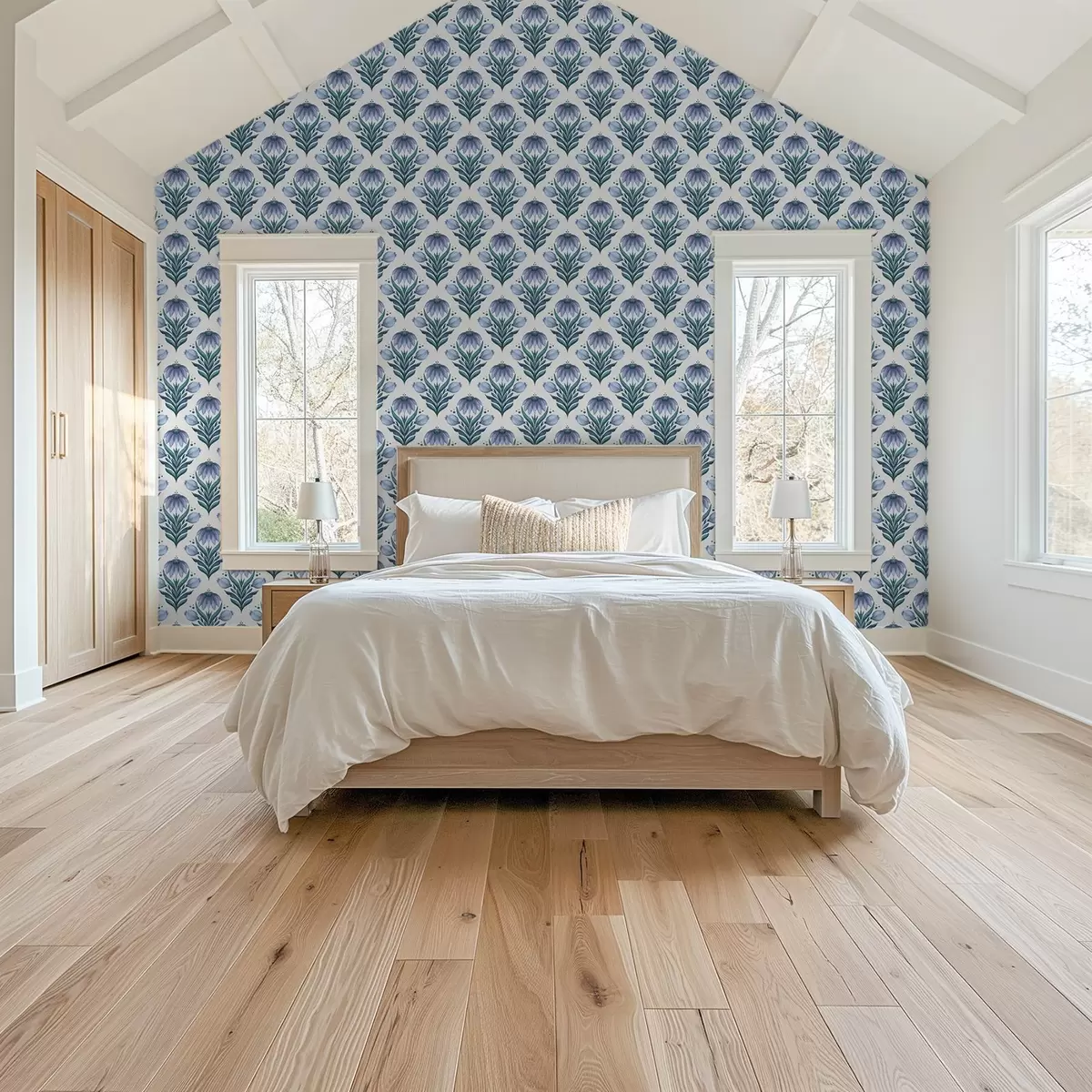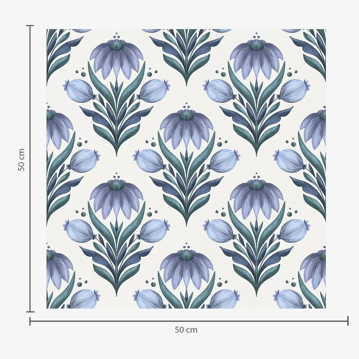 Papiers peints Ornement floral symétrique dans des tons bleu-blanc Nr. a00812v2