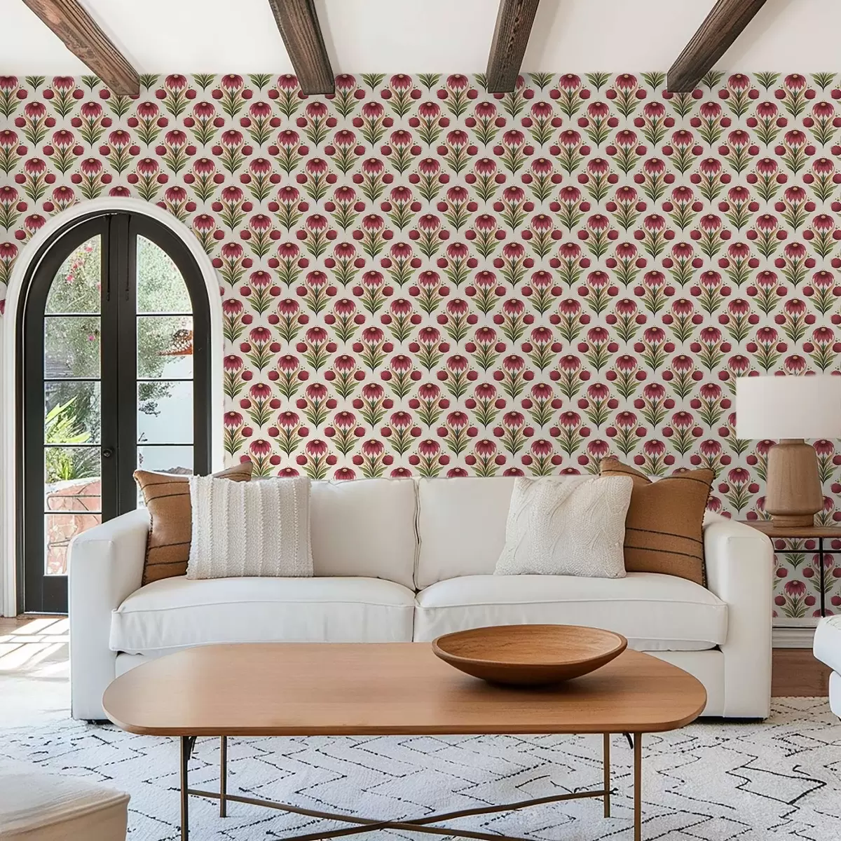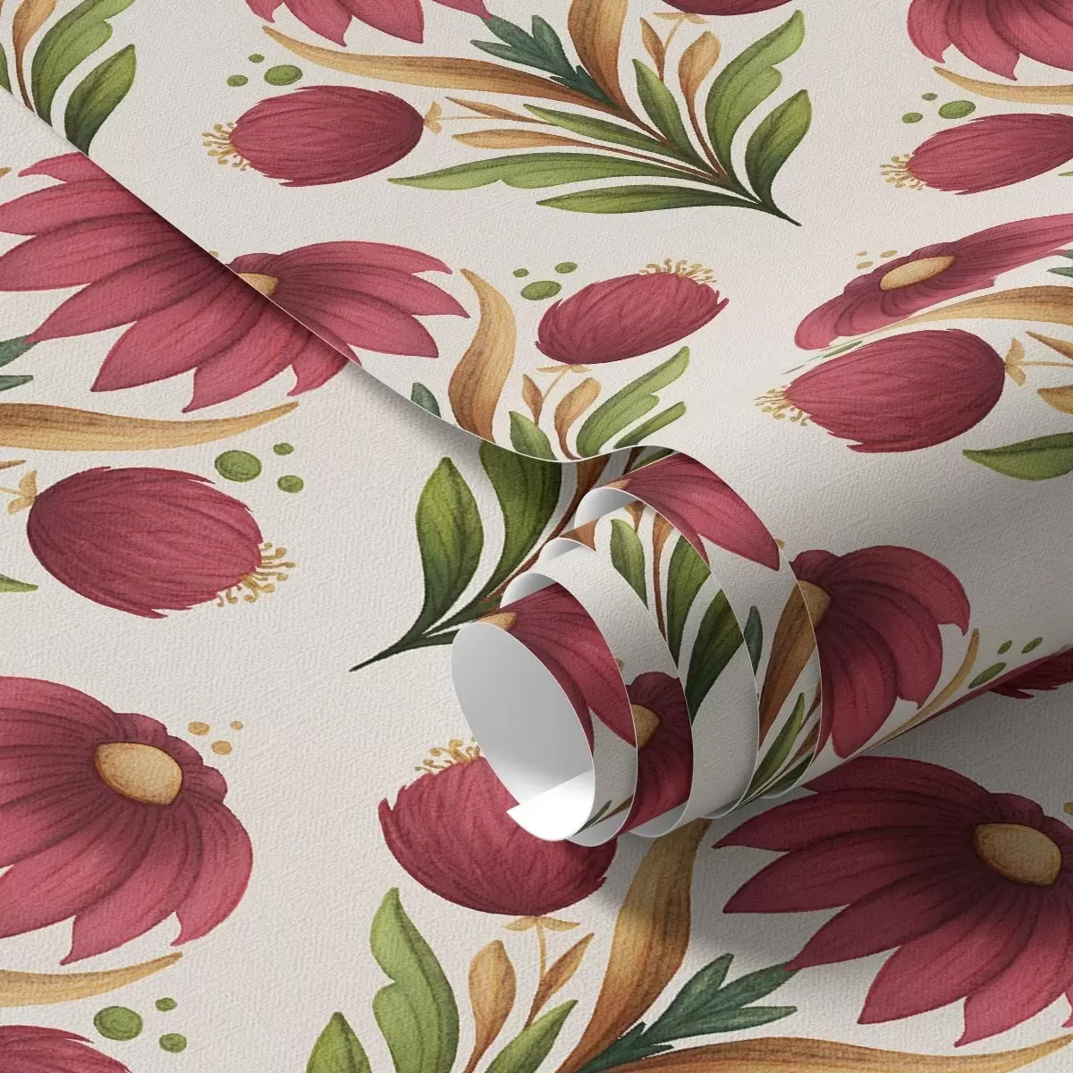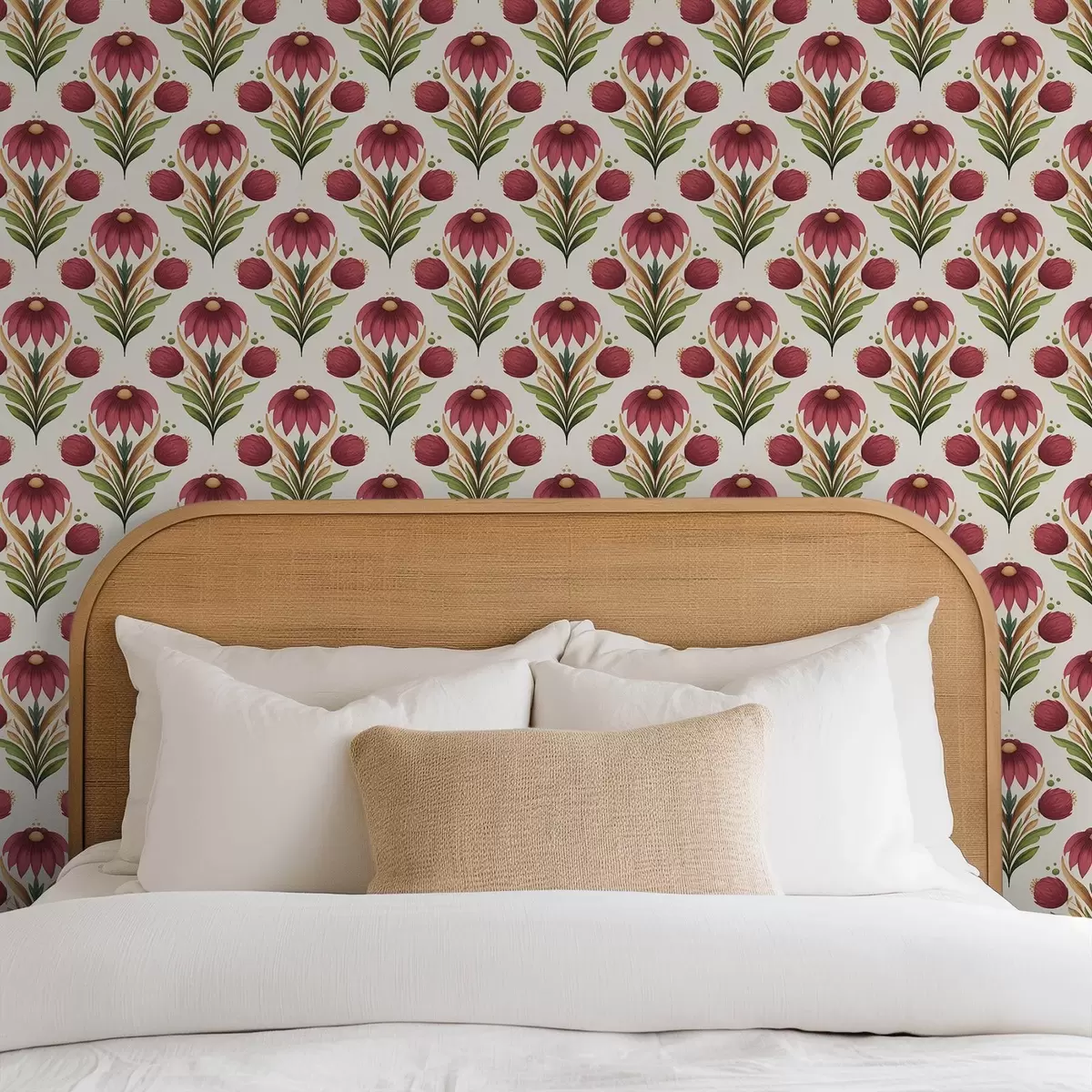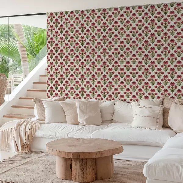 Papiers peints Ornement floral symétrique dans des tons riches rouge-vert Nr. a00812v4