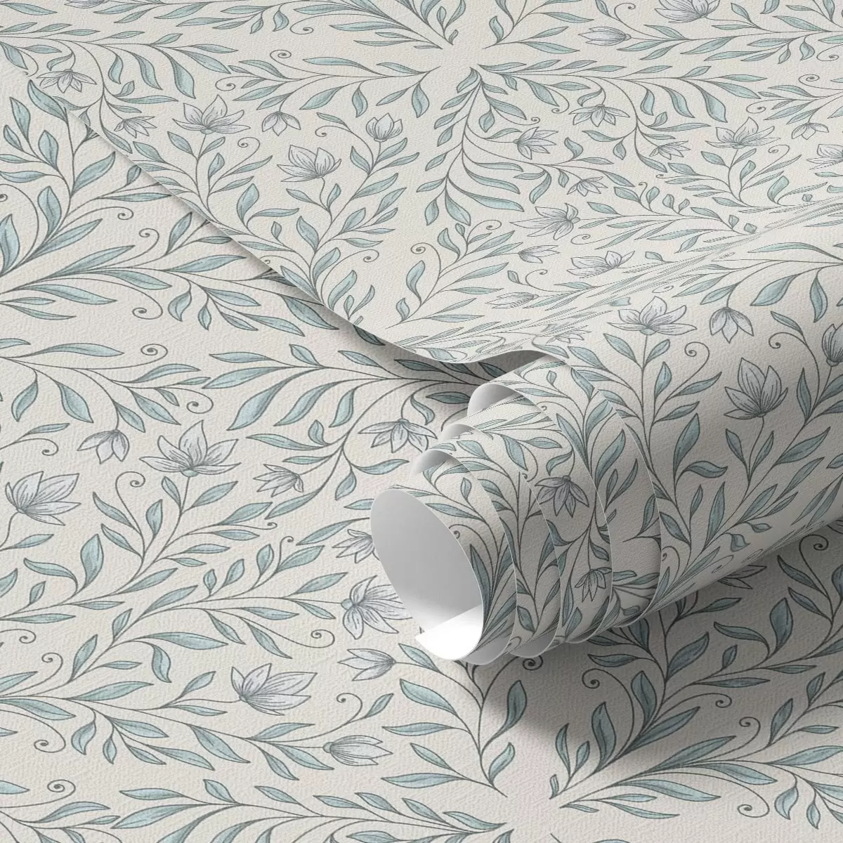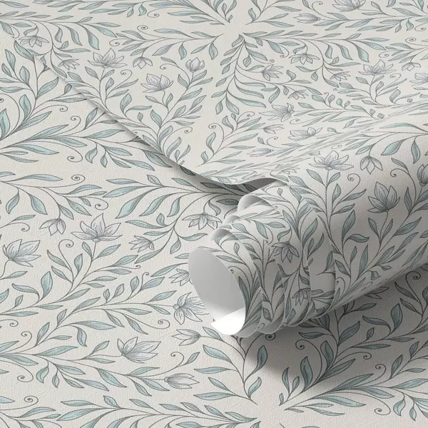 Papiers peints Lacy tire sur fond blanc crème avec un contour turquoise Nr. a00815v4