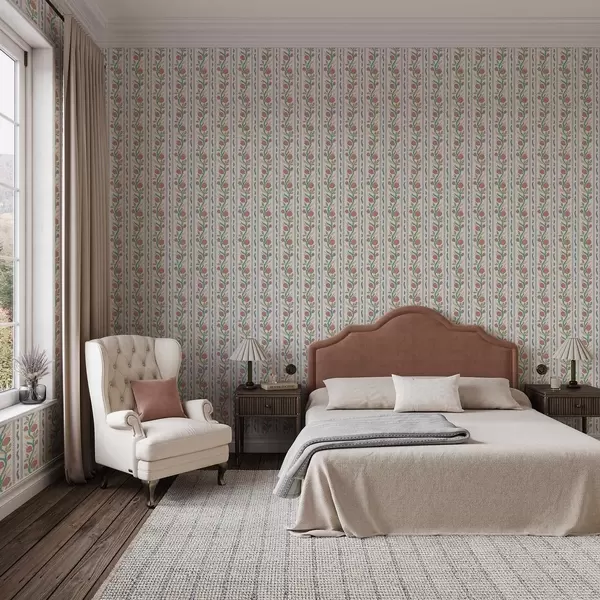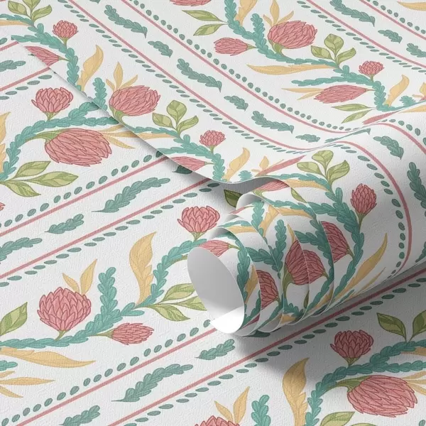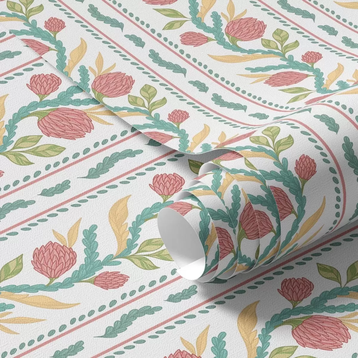 Papiers peints Rayures verticales avec fleurs corail et feuilles turquoise Nr. a00816