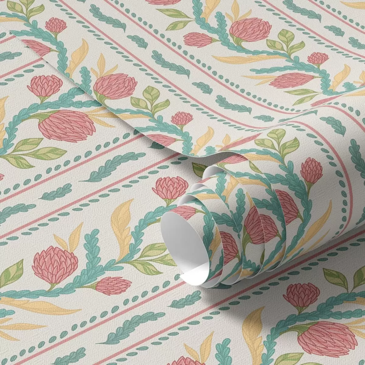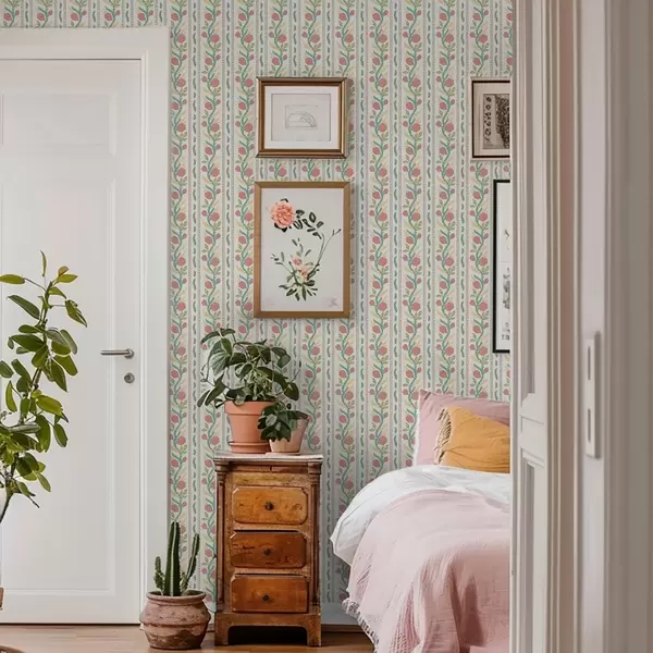 Papiers peints Rayures avec des bourgeons de corail sur fond crème clair Nr. a00816v1