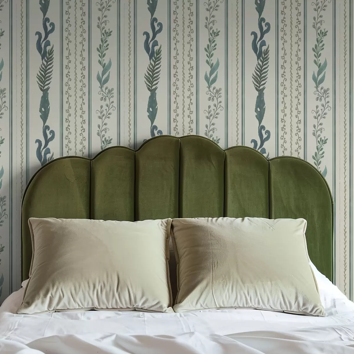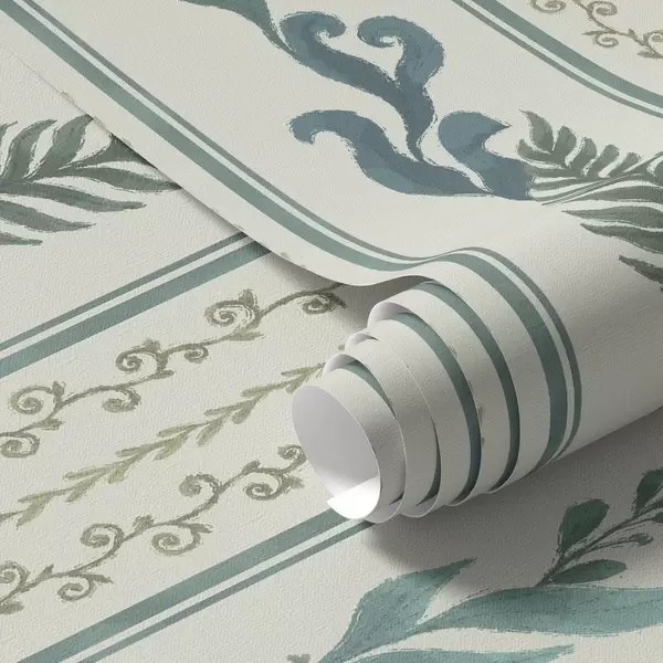Papiers peints Rayures avec des branches et des boucles sur un fond laiteux chaud Nr. a00823v2