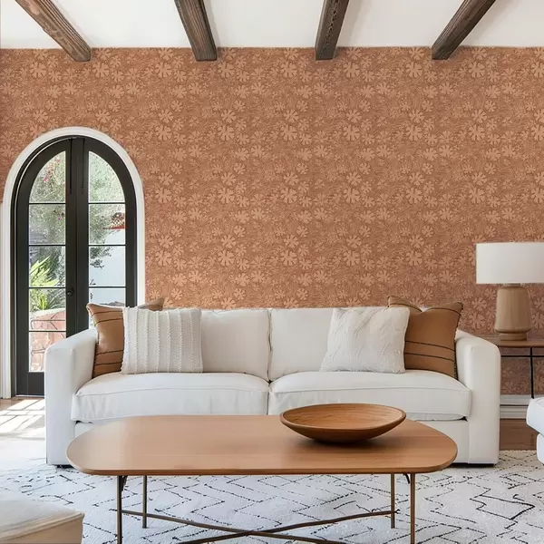 Papiers peints Feuilles et herbes des champs dans une palette de couleurs beige terracotta Nr. a00847
