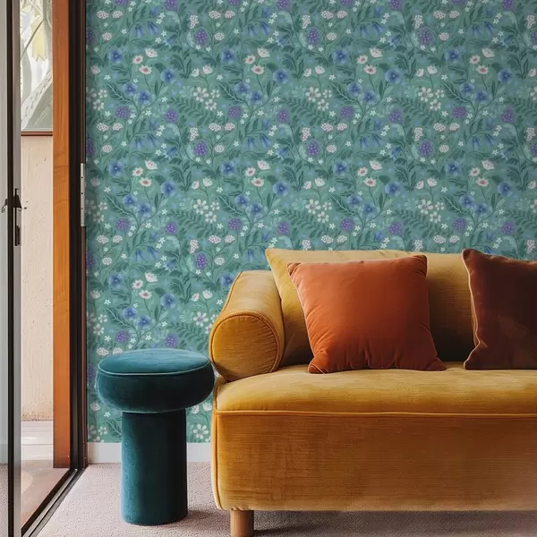 Papiers peints Fleurs sauvages et baies sur fond menthe douce Nr. a00849