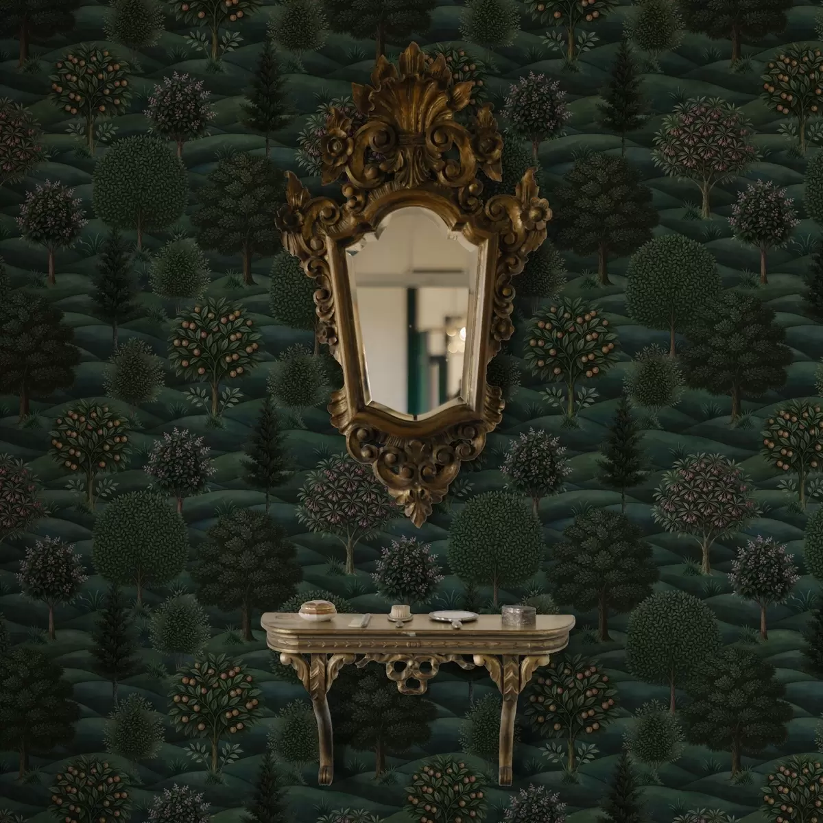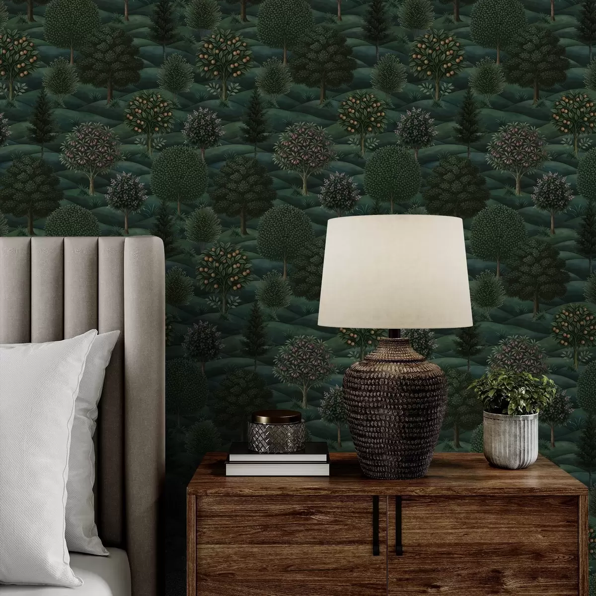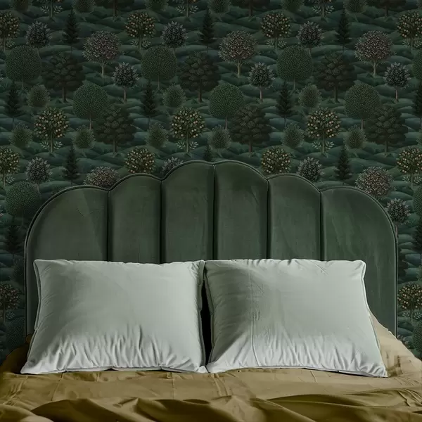 Papiers peints Paysage verdoyant et vallonné parsemé d'arbres disposés en motifs Nr. a00892