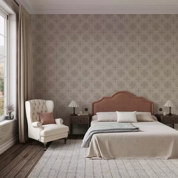 Papiers peints Grilles de lignes en cacao avec petites croix centrales, beige Nr. a00911