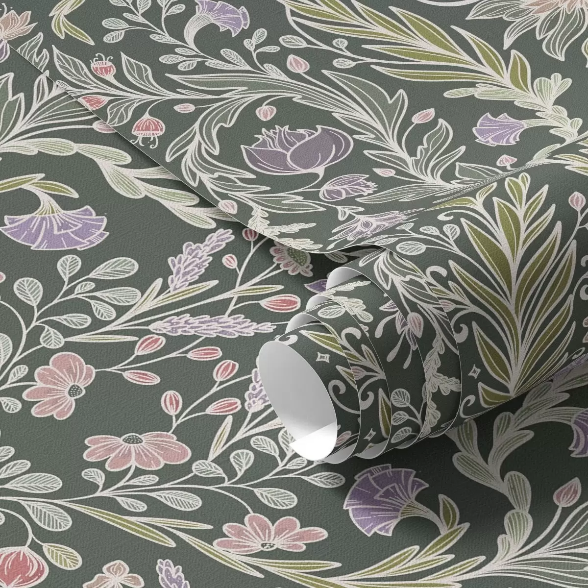 Papiers peints Ornement floral symétrique sur fond vert foncé Nr. a00928
