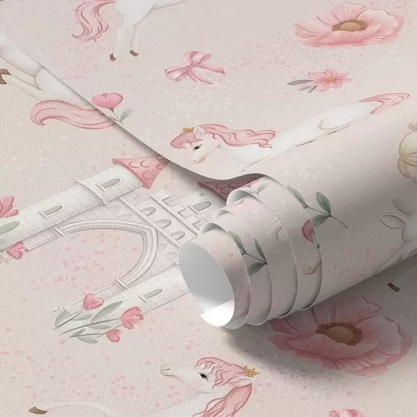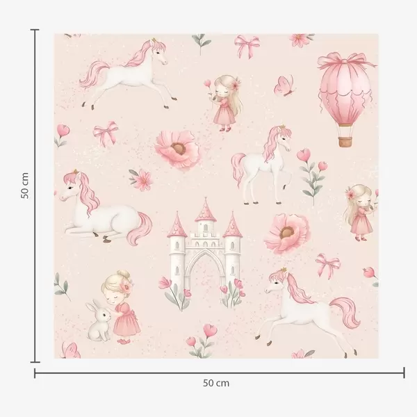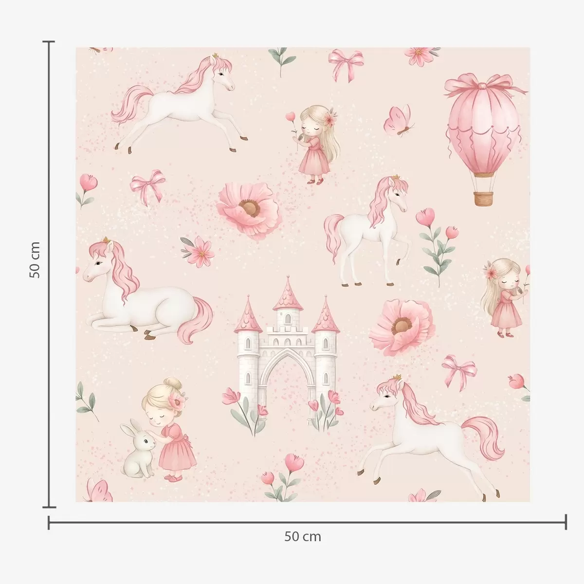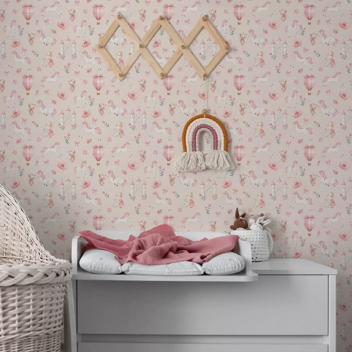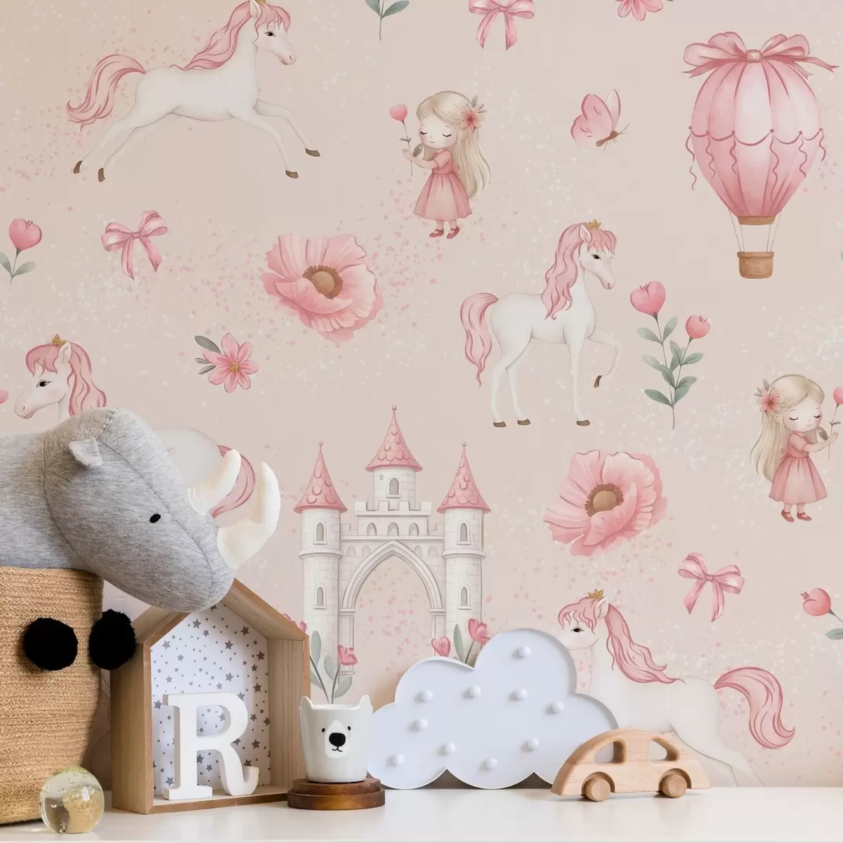 Papiers peints Licornes roses, petites filles et château sur un fond doux Nr. a00957