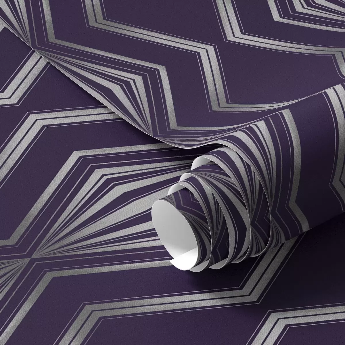 Papiers peints Fond violet intense avec des losanges et des lignes grises en zigzag Nr. a00974v1