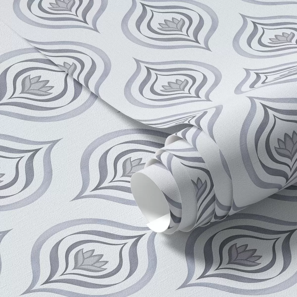 Papiers peints Motif goutte tendance avec une fleur dans les tons gris-bleu Nr. a00977v3