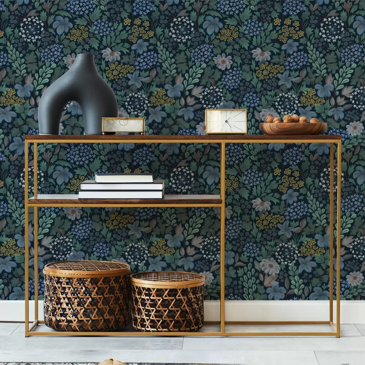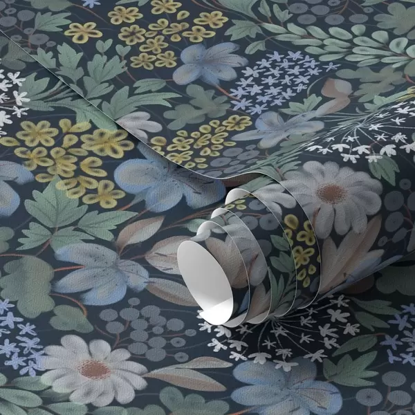 Papiers peints Jardin nocturne avec lys bleus, baies et végétation sauvage Nr. a00996