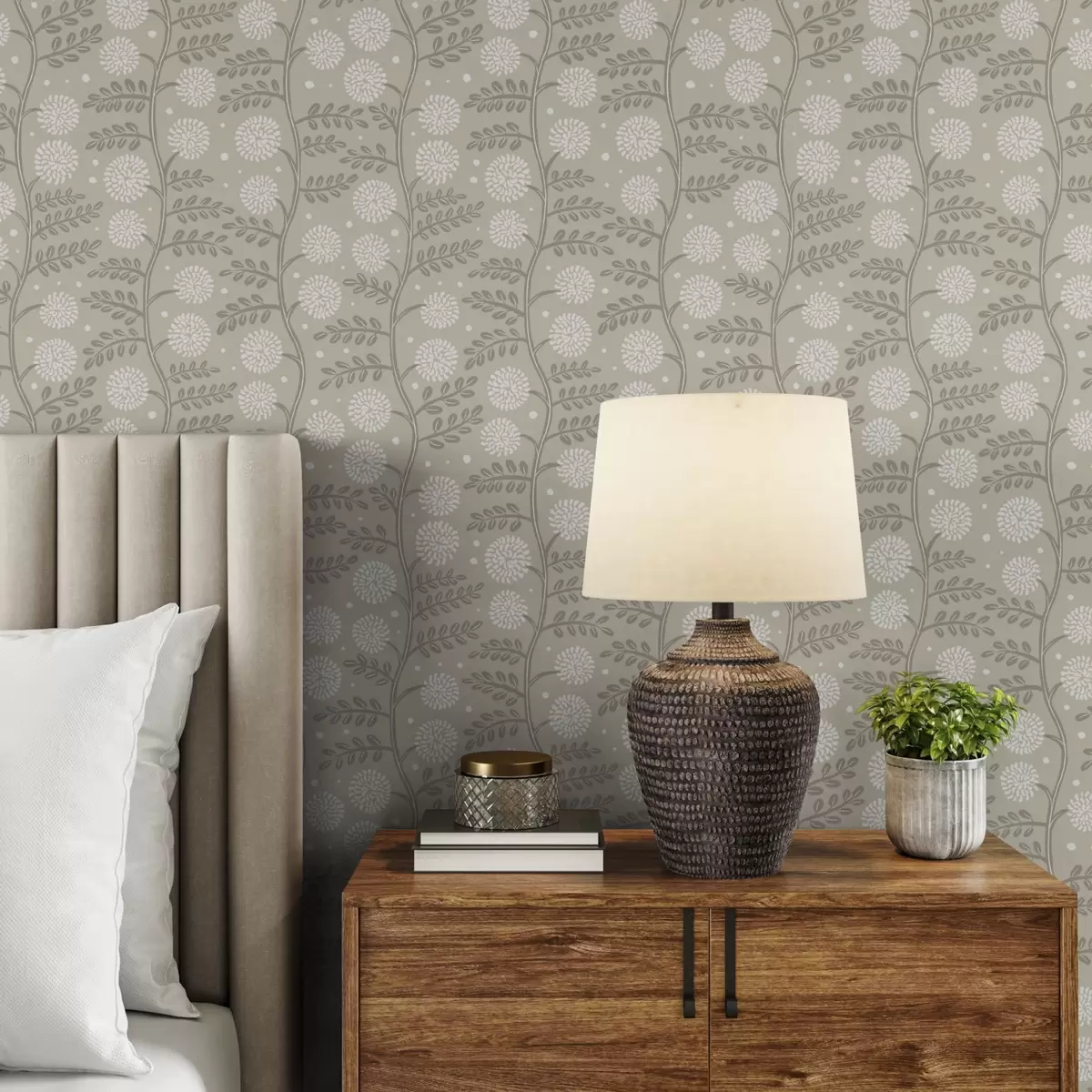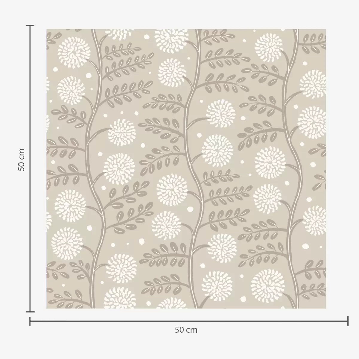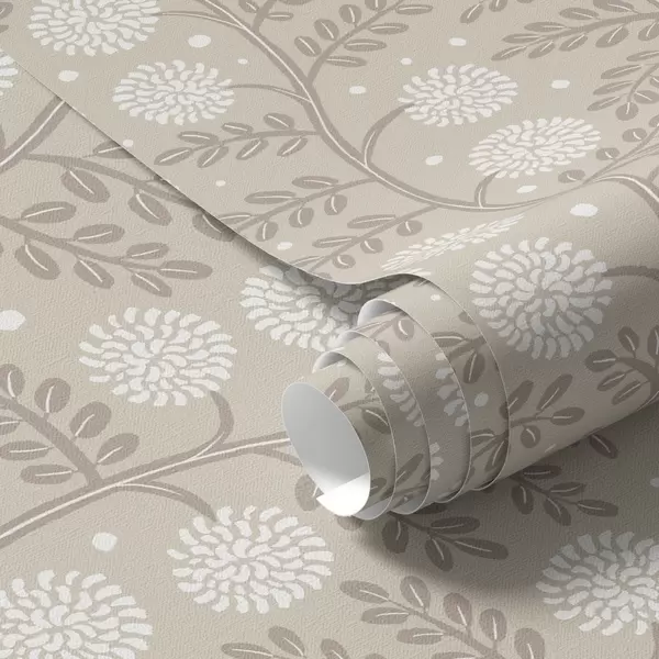 Papiers peints Tiges beiges avec des fleurs blanches duveteuses et des points doux Nr. a00997