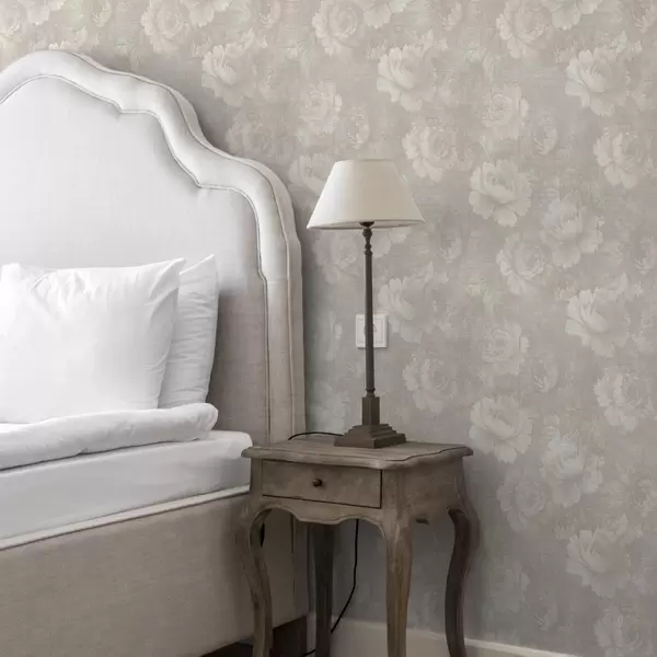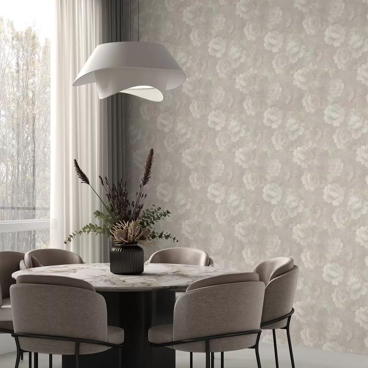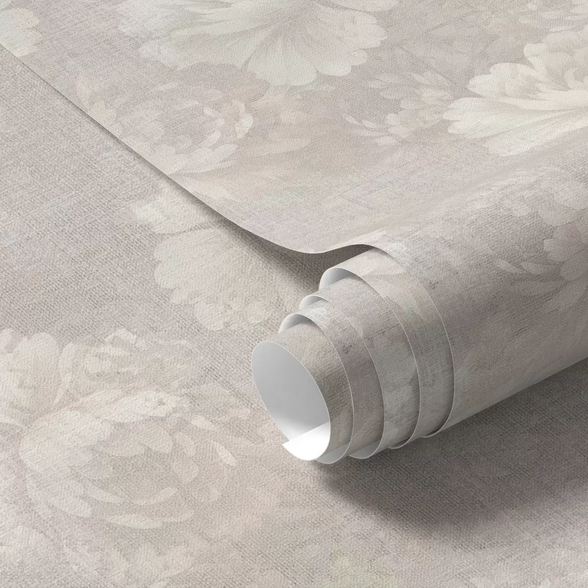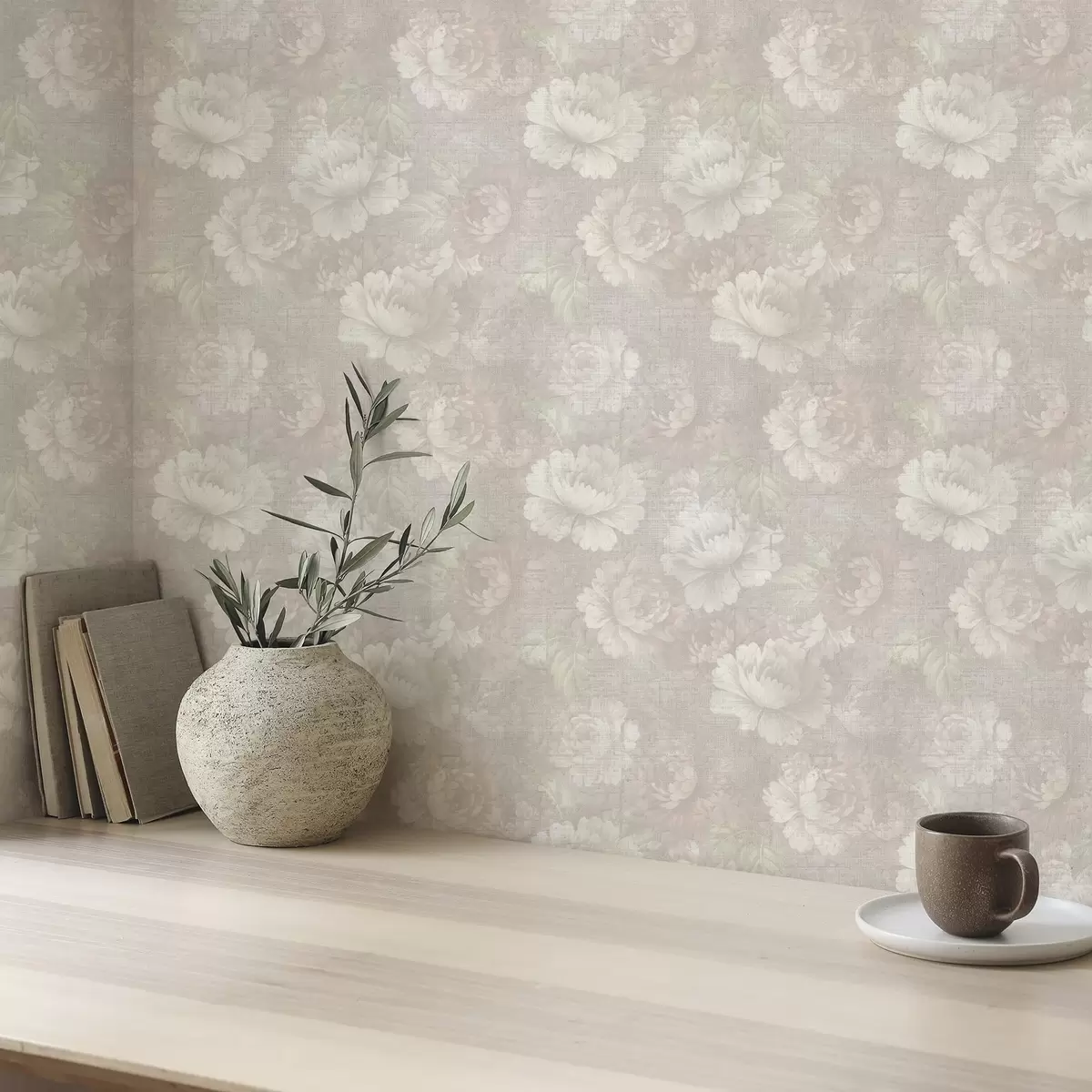 Papiers peints Pivoines fanées sur texture lin dans une palette beige doux Nr. a01018