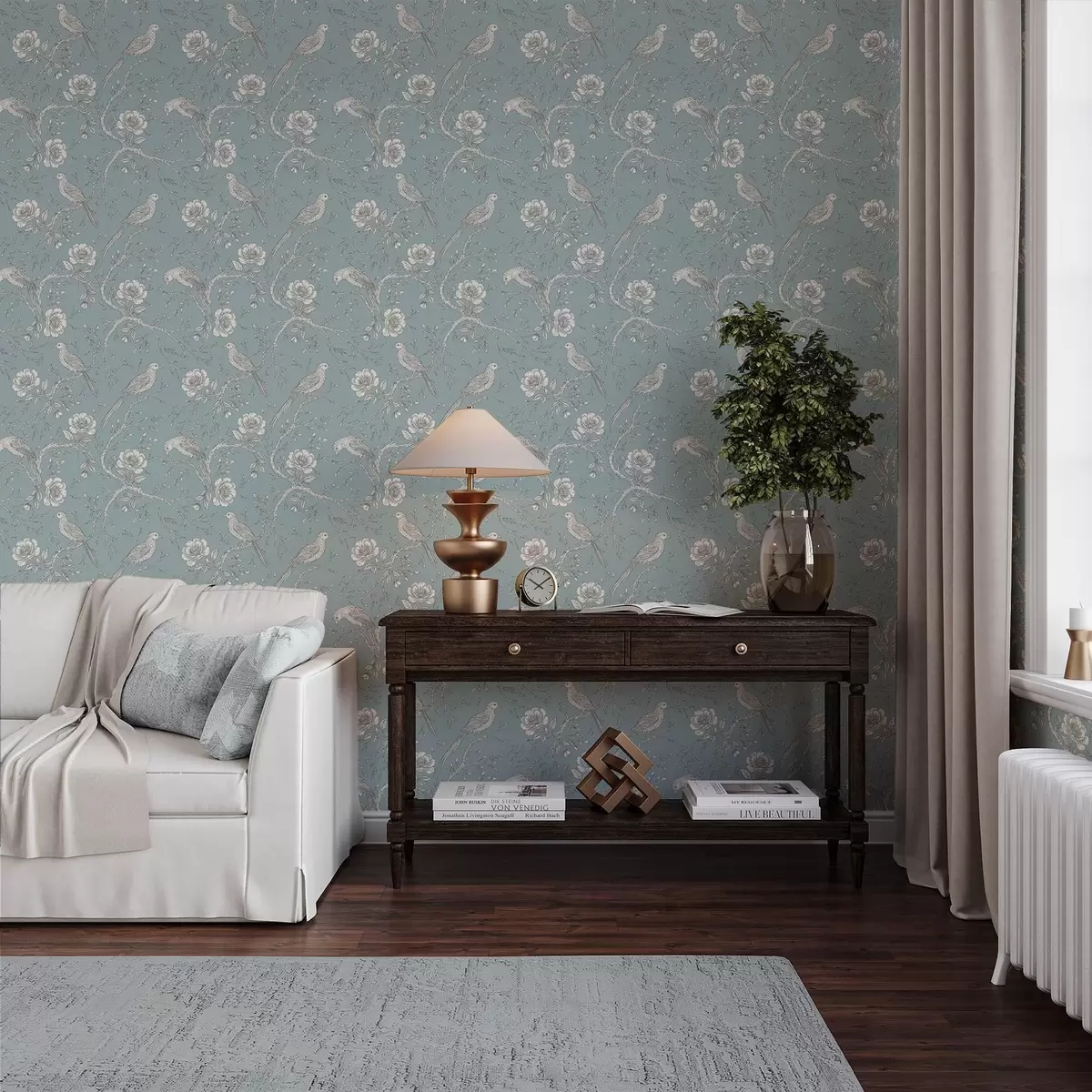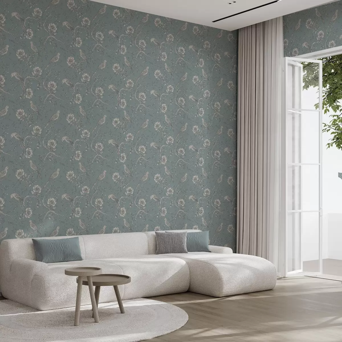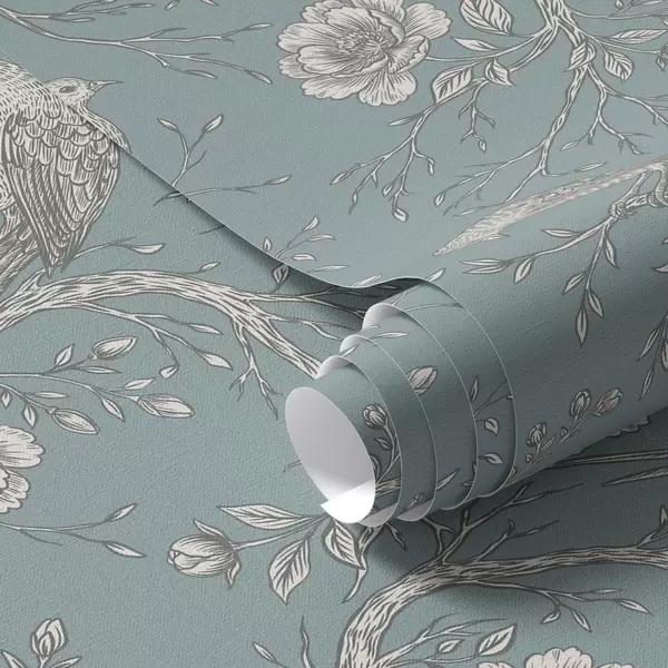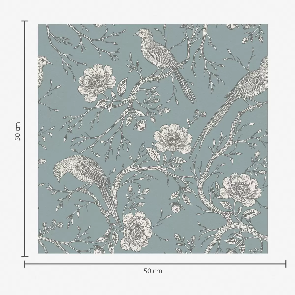Papiers peints Oiseaux dessinés en contour sur des branches, fond bleu discret Nr. a01022