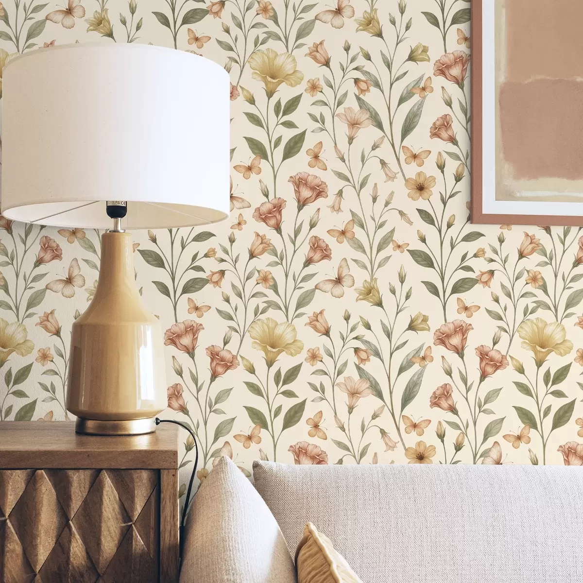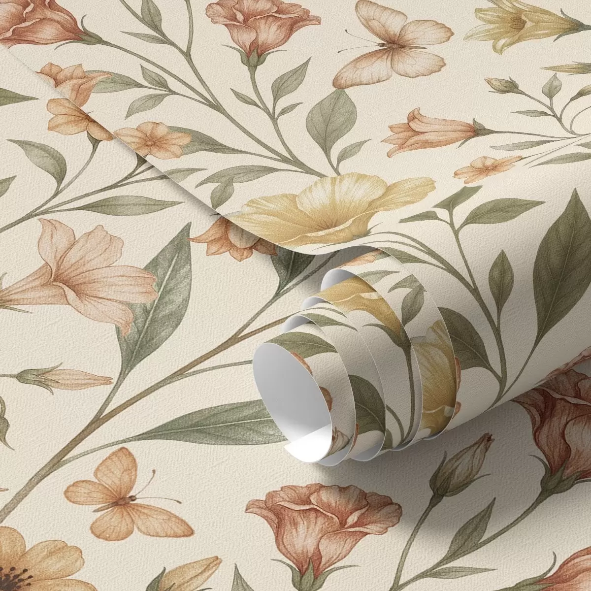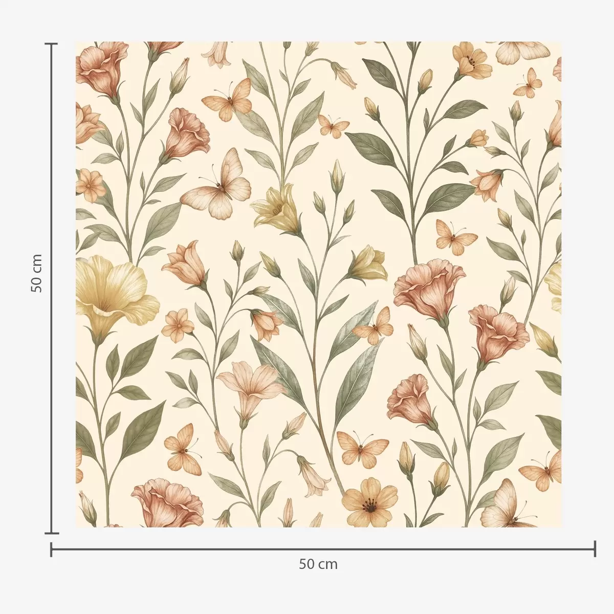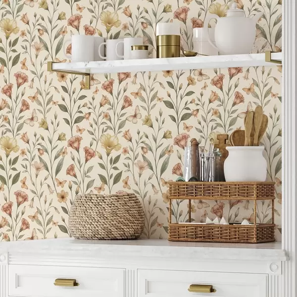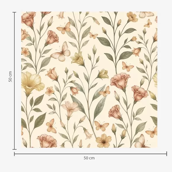 Papiers peints Délicates fleurs de pêcher et papillons sur fond crème chaud Nr. a01026