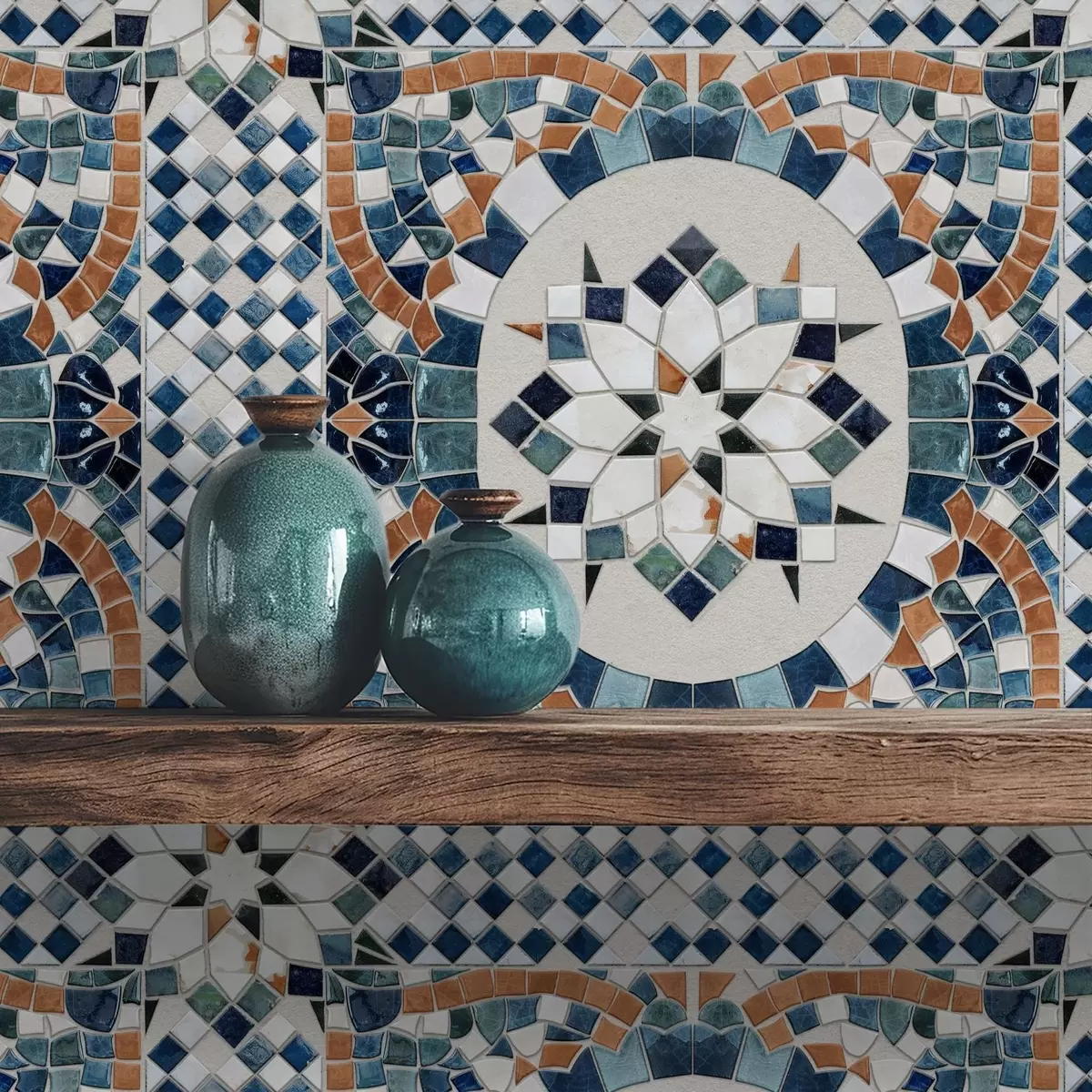 Papiers peints Mosaïque marocaine lumineuse dans les tons bleu-turquoise Nr. a01043