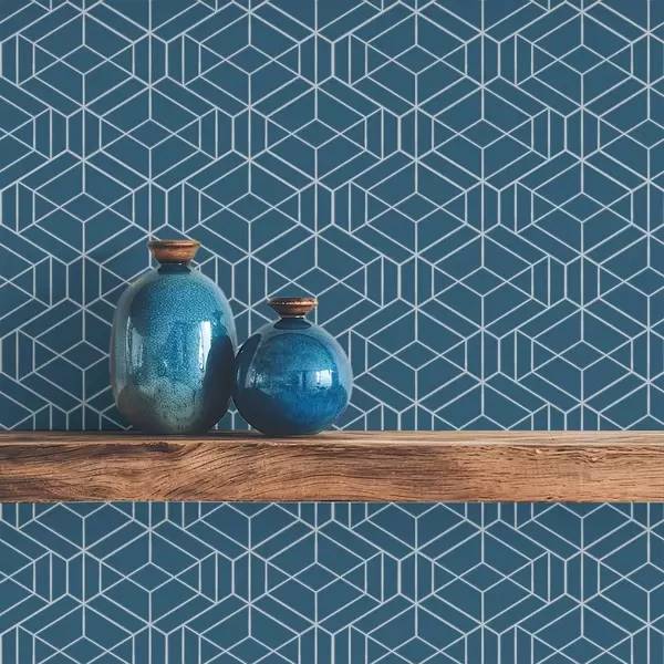 Papiers peints Fond bleu avec des cubes linéaires blancs disposés en grille Nr. a01067v1