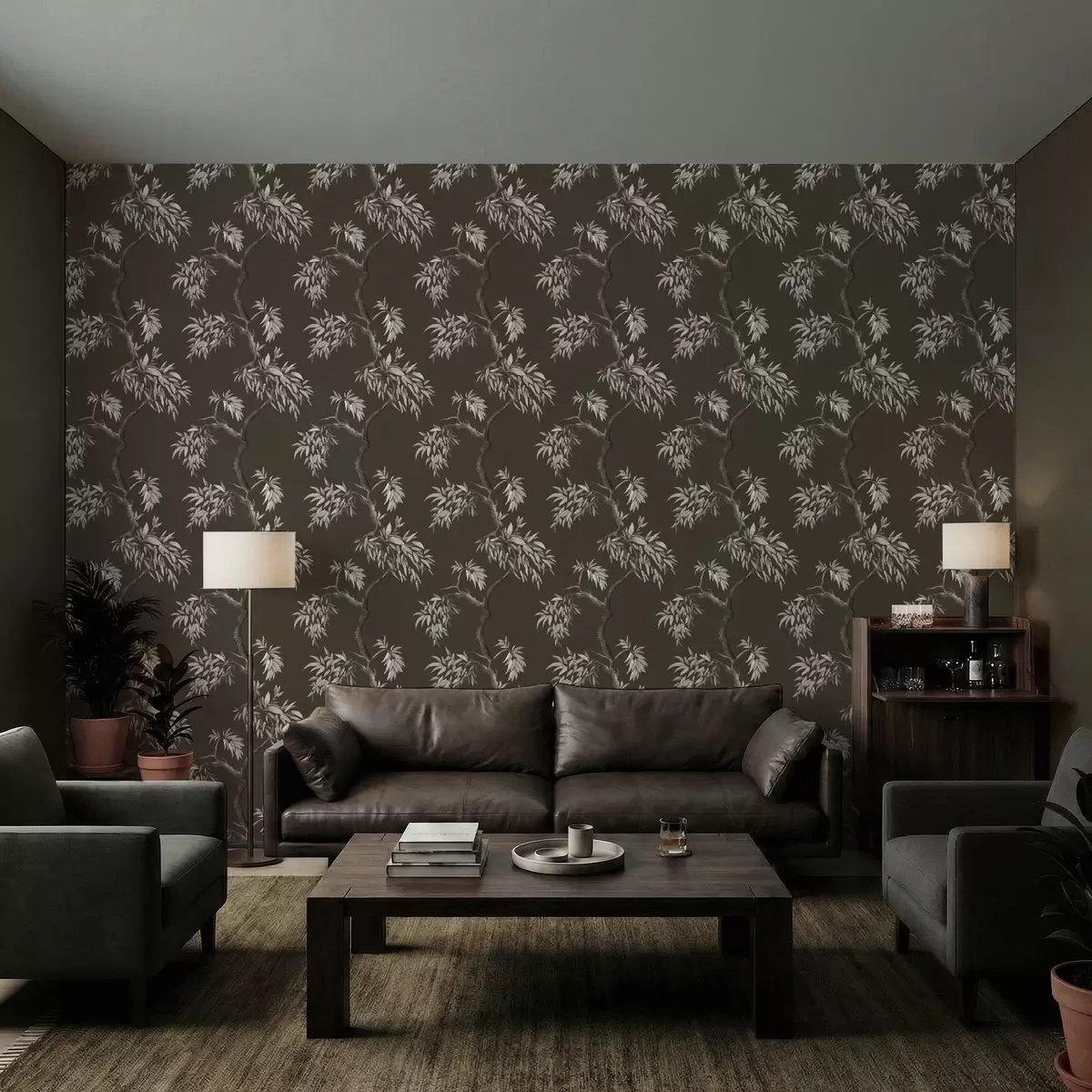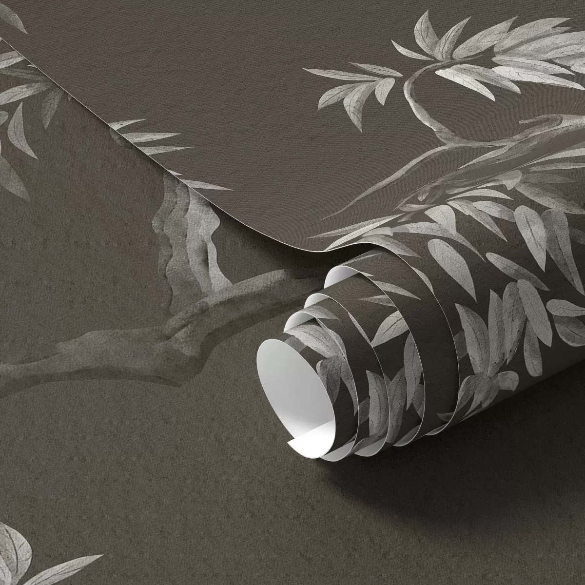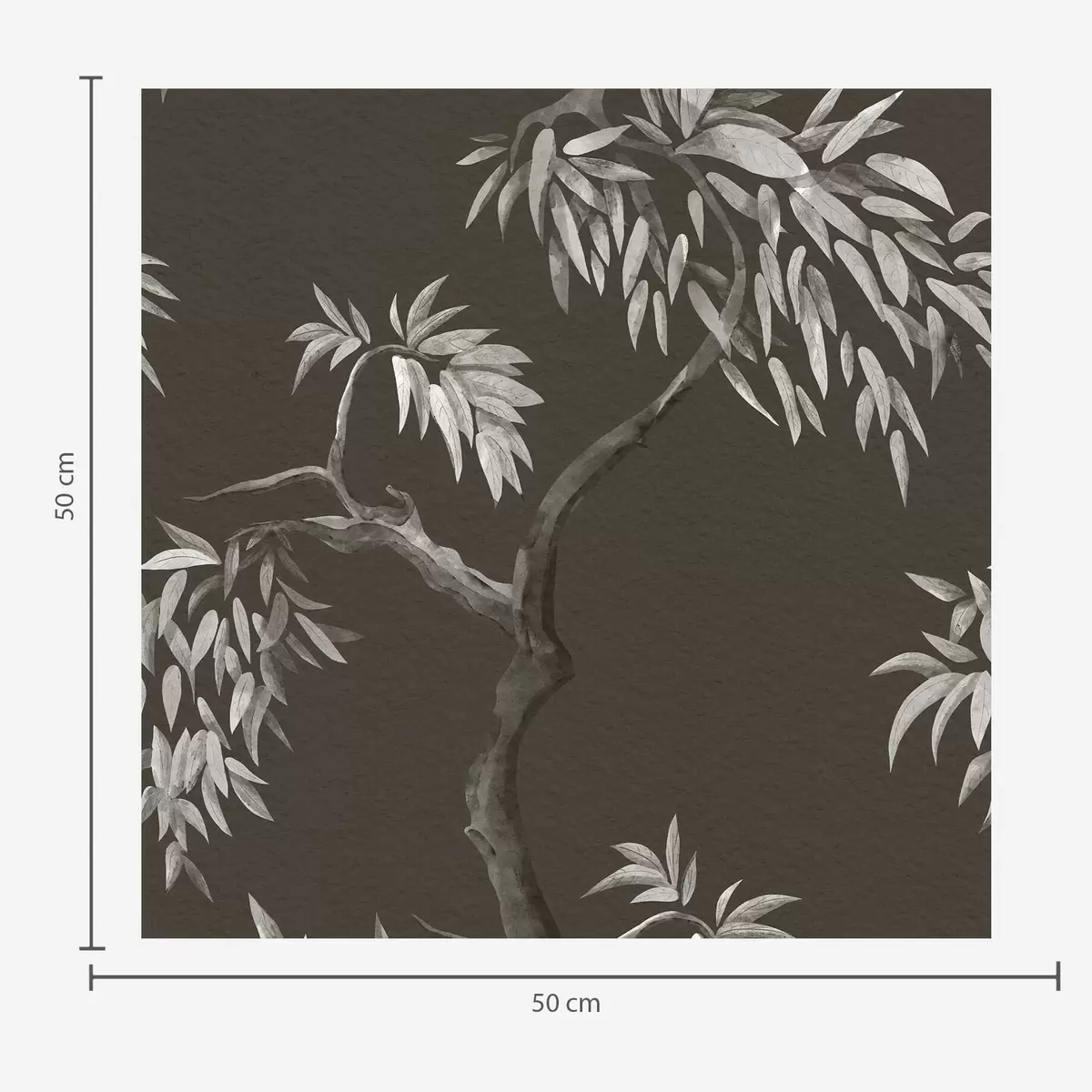 Papiers peints Branche monochrome avec feuilles sur fond sombre Nr. a01117v2