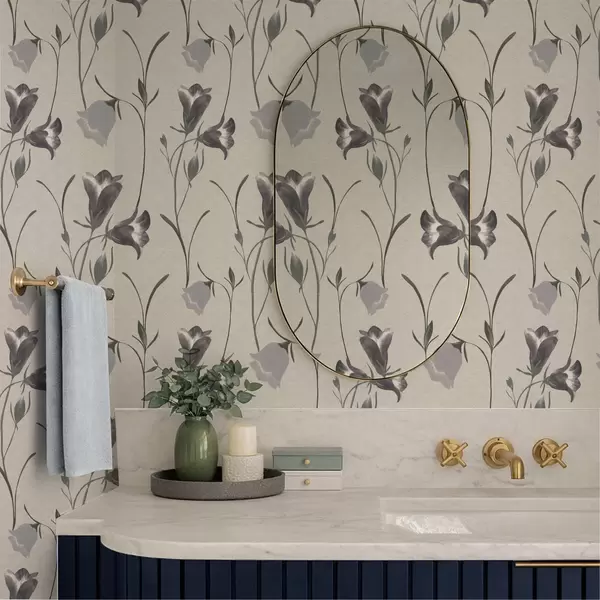 Papiers peints Fleurs grises en forme de clochettes sur fond beige clair Nr. a01119