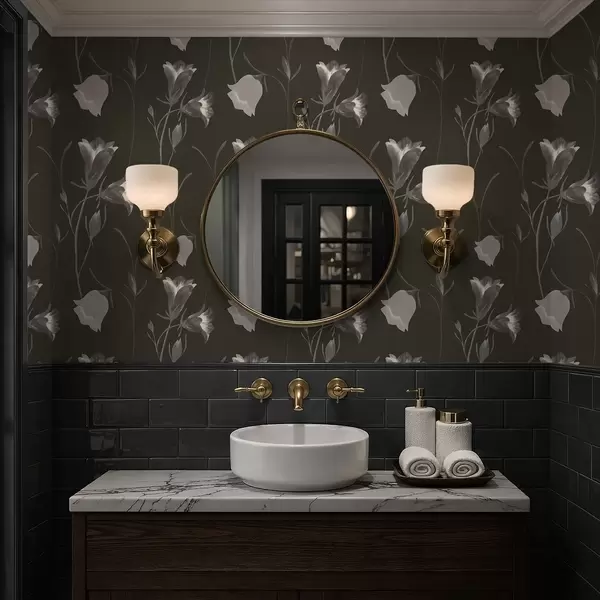 Papiers peints Fleurs grises en forme de clochettes sur fond sombre Nr. a01119v1