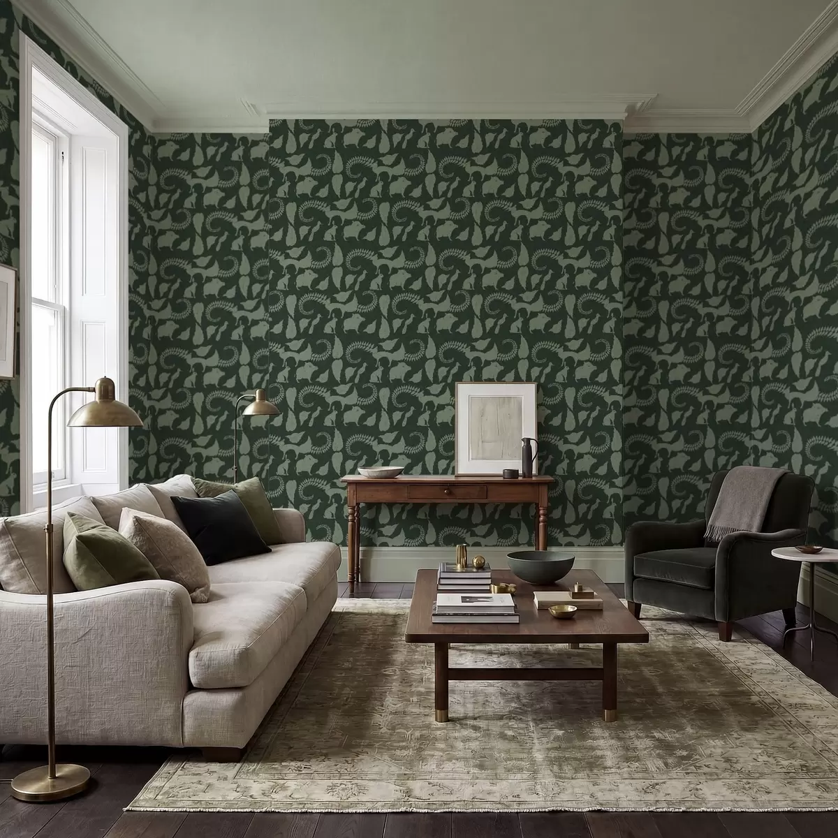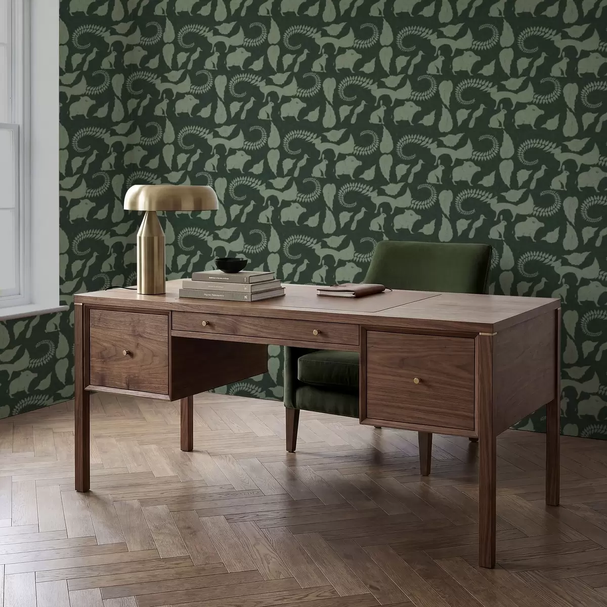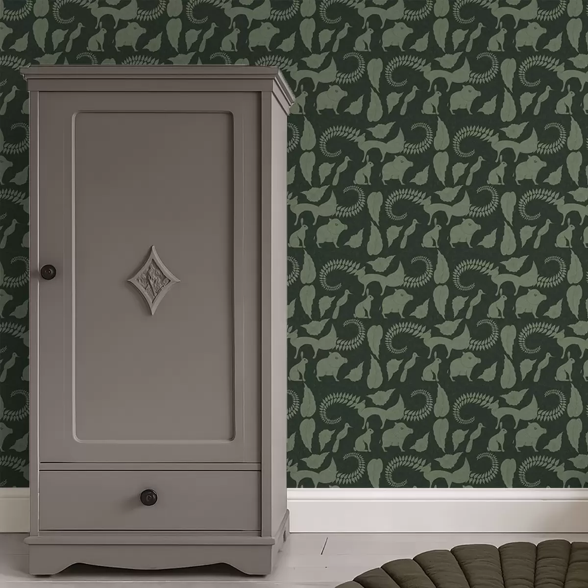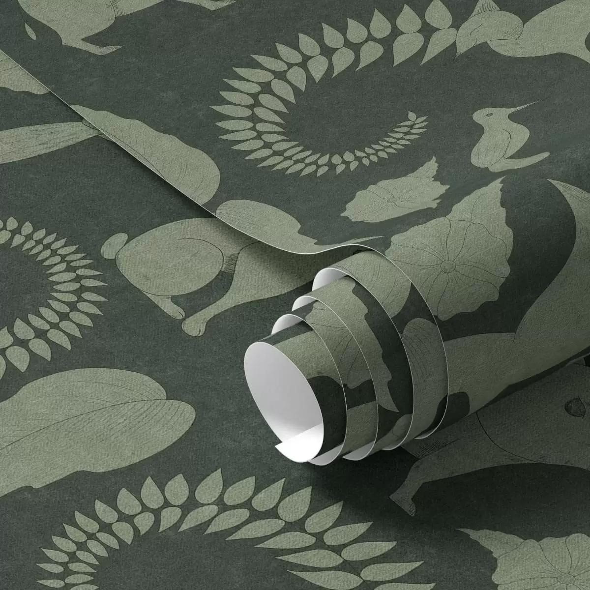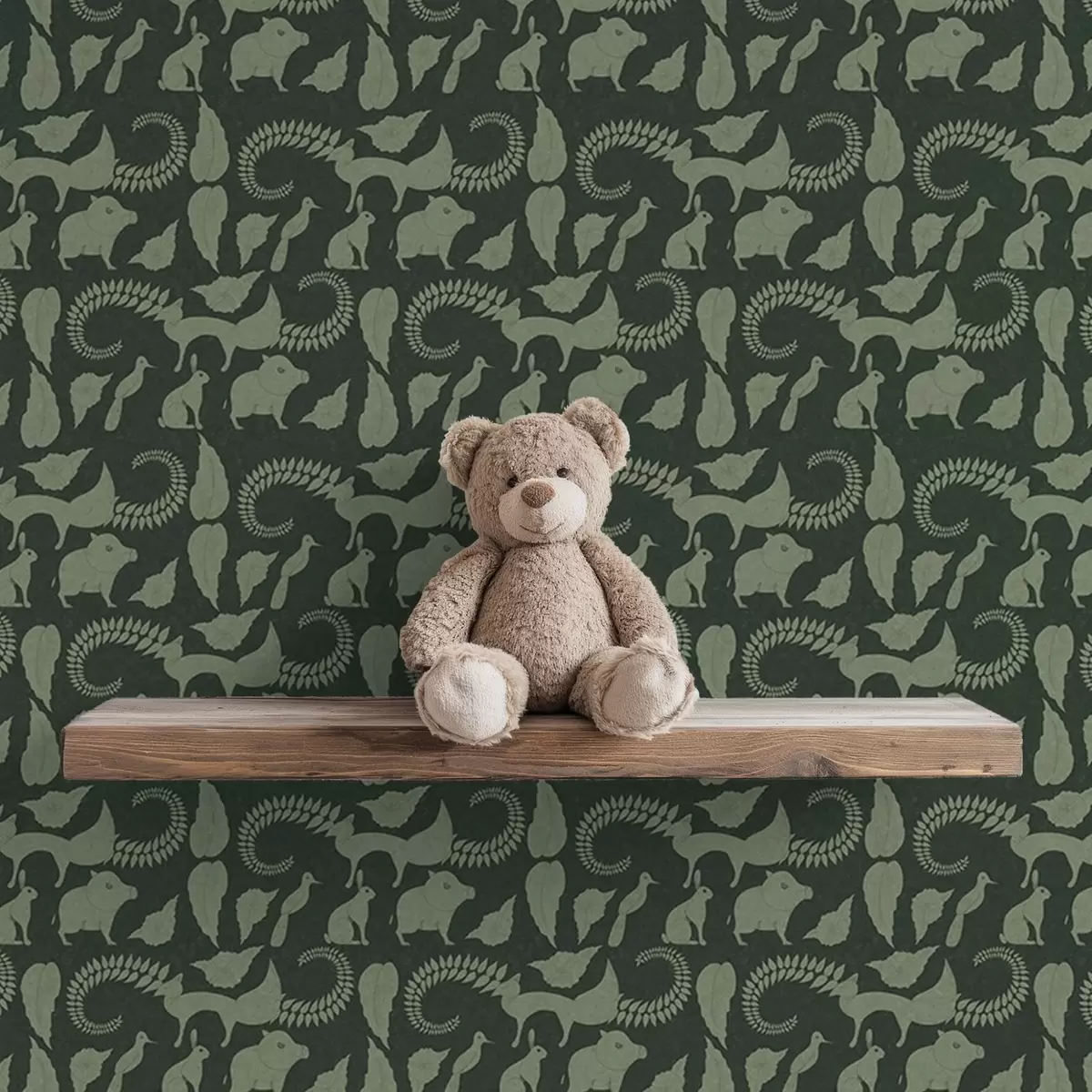 Papiers peints Motif forestier avec des animaux sur fond vert Nr. a01121v1