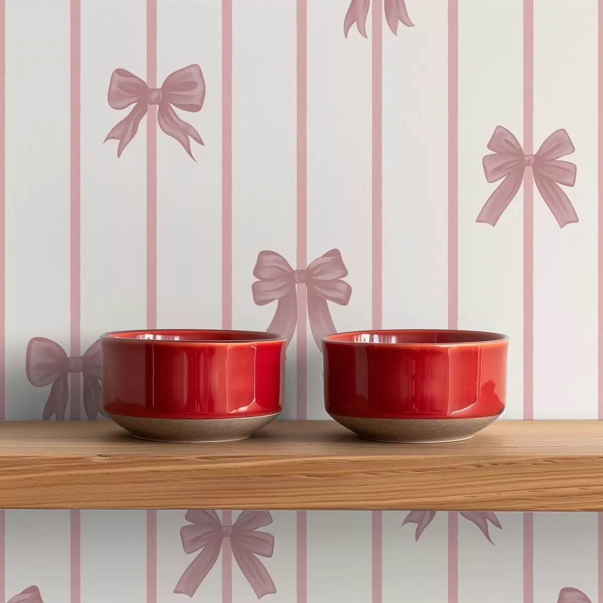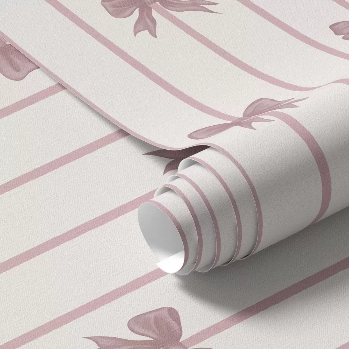 Papiers peints Des nœuds roses sur des rayures verticales sur fond clair Nr. a01162