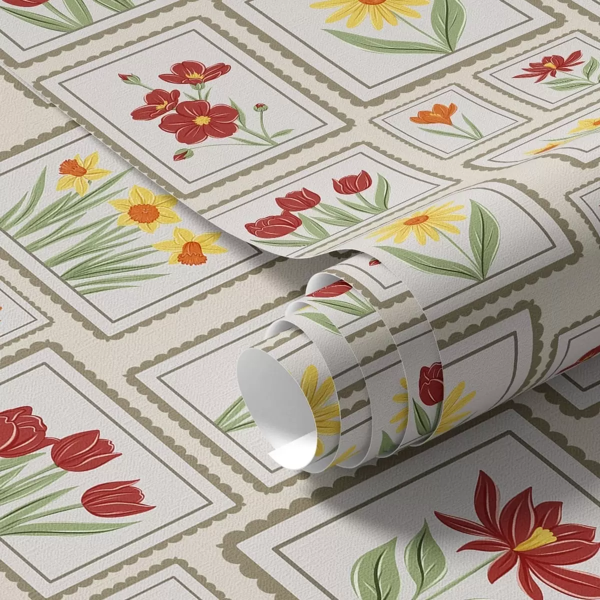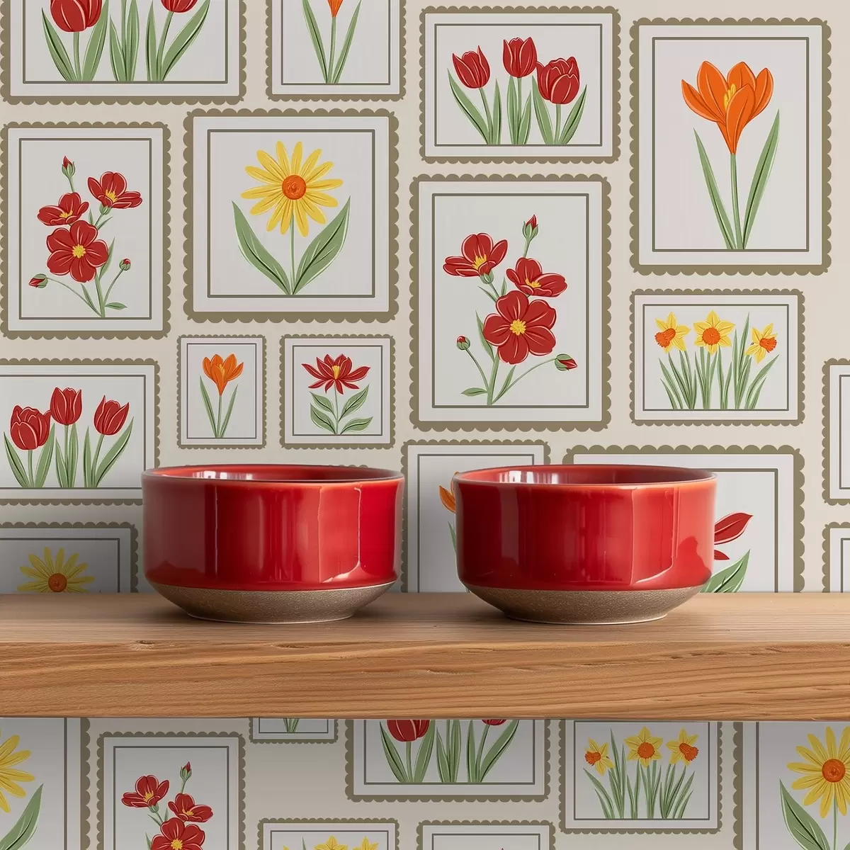 Papiers peints Illustrations florales encadrées dans des tons chauds Nr. a01173