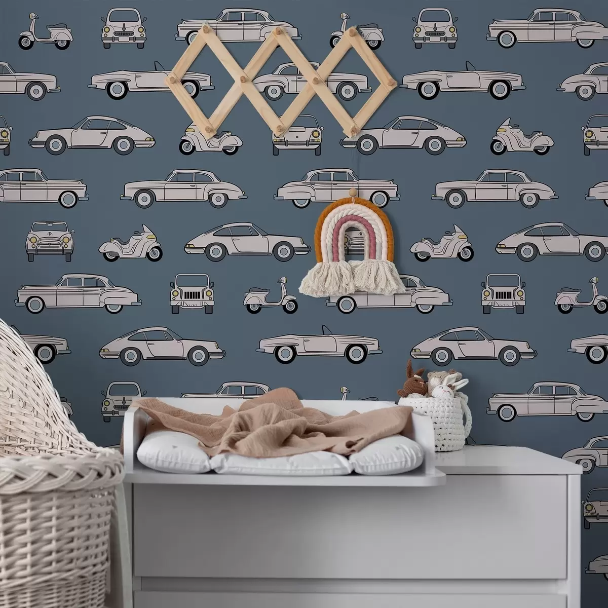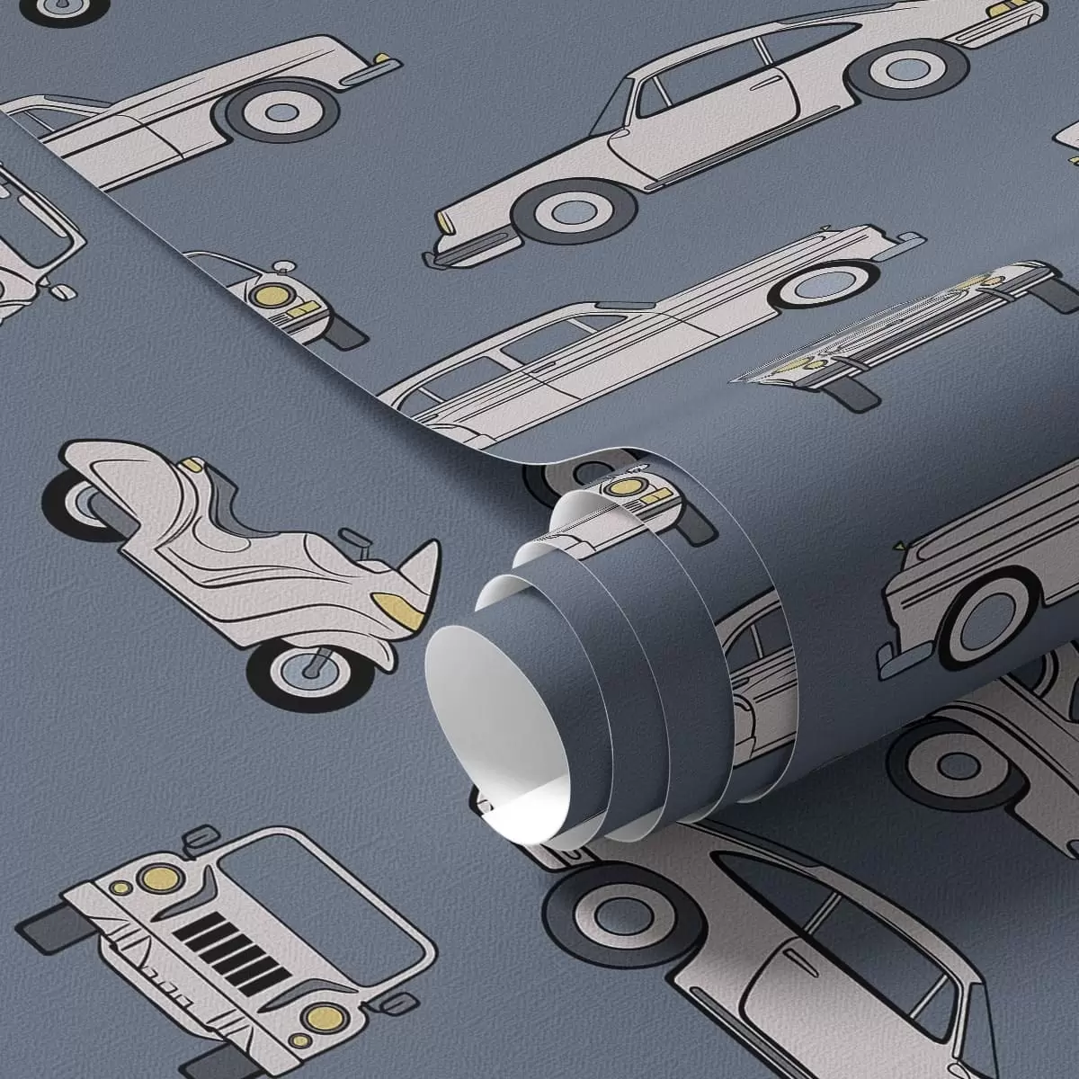 Papiers peints Voitures et scooters rétro sur fond bleu Nr. a01178