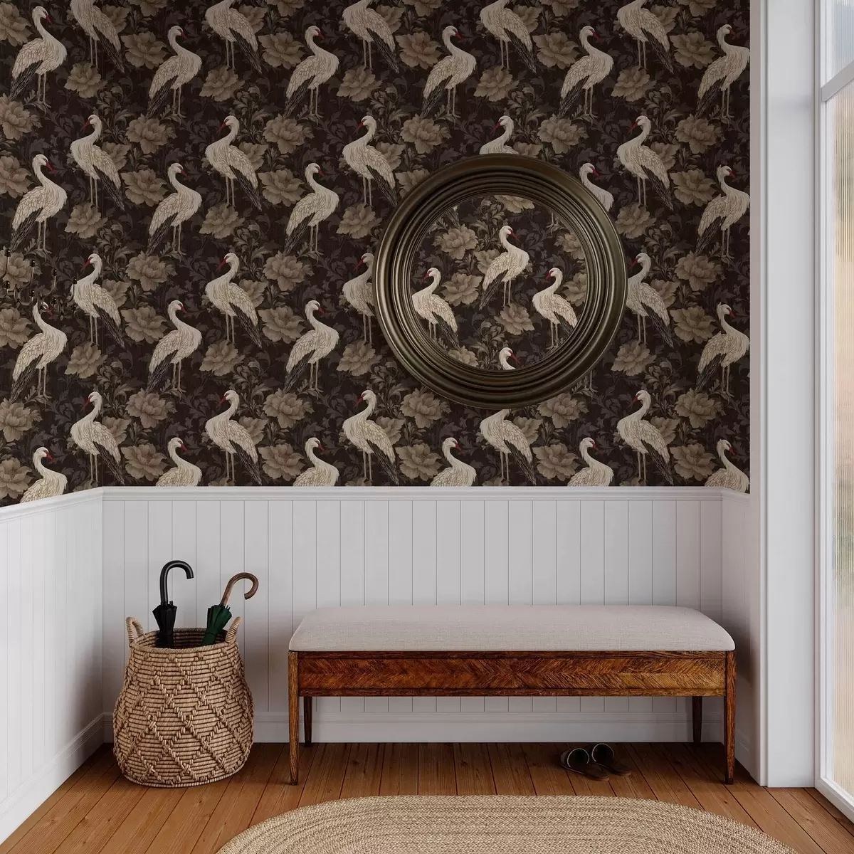 Bildschirmhintergründe Kraniche zwischen großen Blumen in einer klassischen Pastellfarbe Nr. a00108