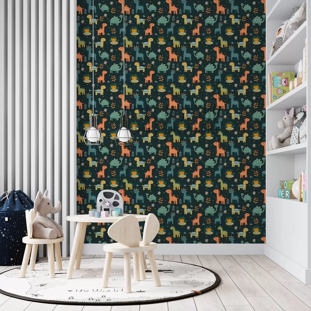 Bildschirmhintergründe Lustige Dinosaurier in Pastellfarben auf dunklem Hintergrund Nr. a00125v2
