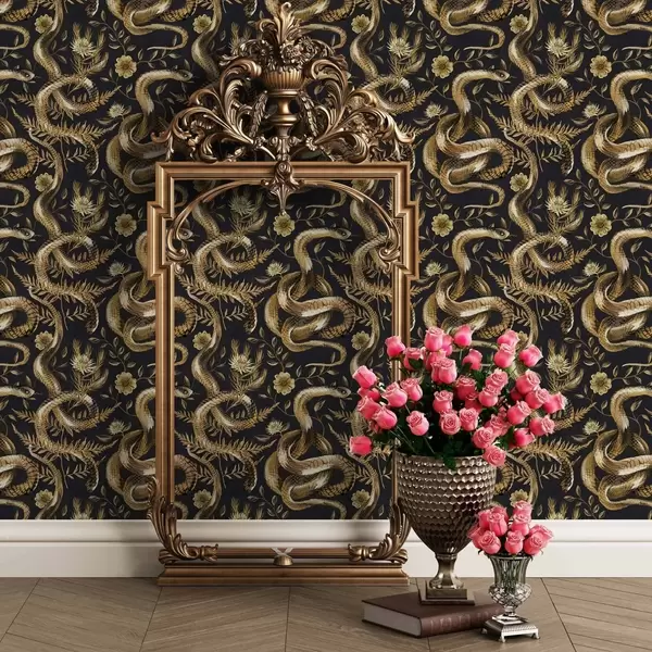 Bildschirmhintergründe Schlangen und Blumen auf einem dunklen Hintergrund Nr. a00158