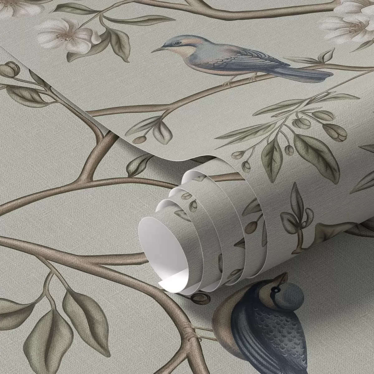 Bildschirmhintergründe Zweige mit Vögeln und weißen Blumen auf einem zarten Hintergrund Nr. a00303