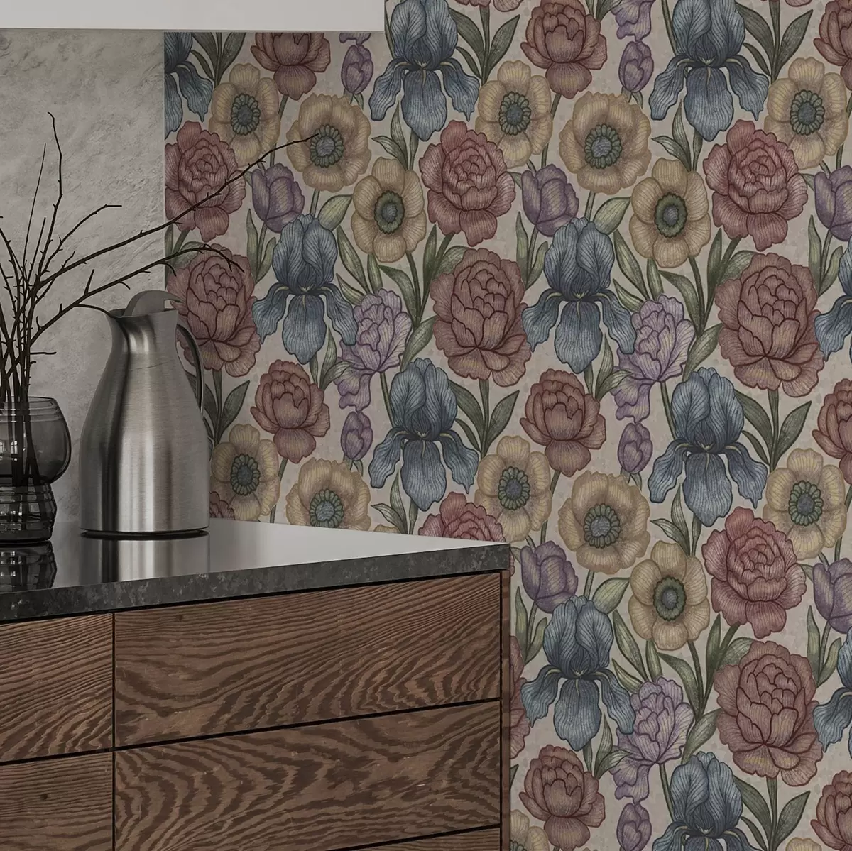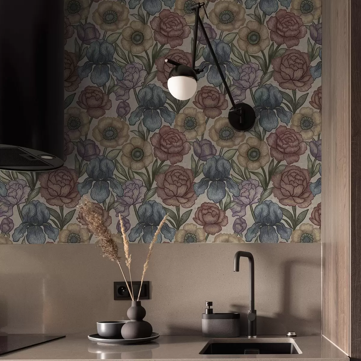 Bildschirmhintergründe Große florale Illustrationen mit Schwertlilien und Pfingstrosen Nr. a00325