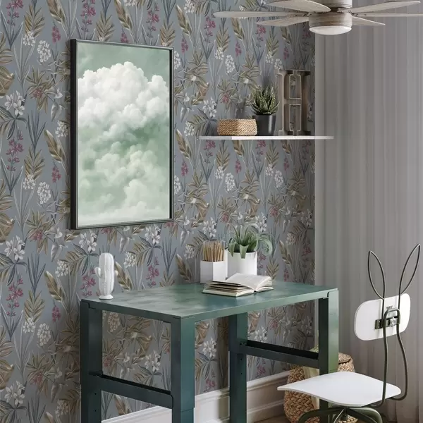 Bildschirmhintergründe Florale Zweige auf blau-grauem Hintergrund Nr. a00350