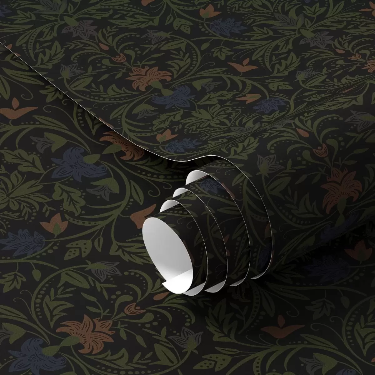 Tapete Dunkles Ornament mit Pflanzen im klassischen Stil a00412