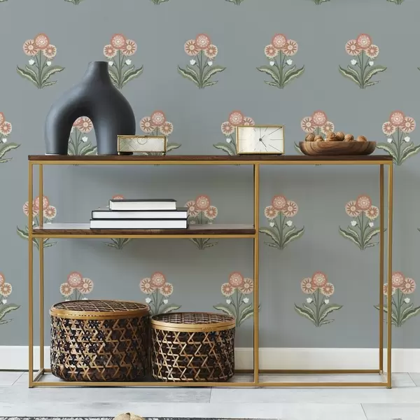 Bildschirmhintergründe Stilisierte Blumen auf grau-blauem Hintergrund, warme Farbpalette Nr. a00494