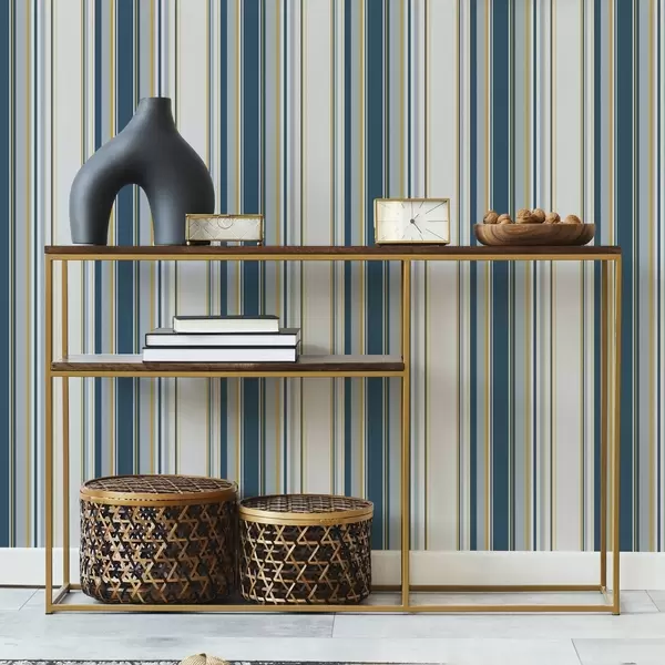 Tapete Kontrastierende blaue und gelbe Streifen auf weißem Hintergrund a00566