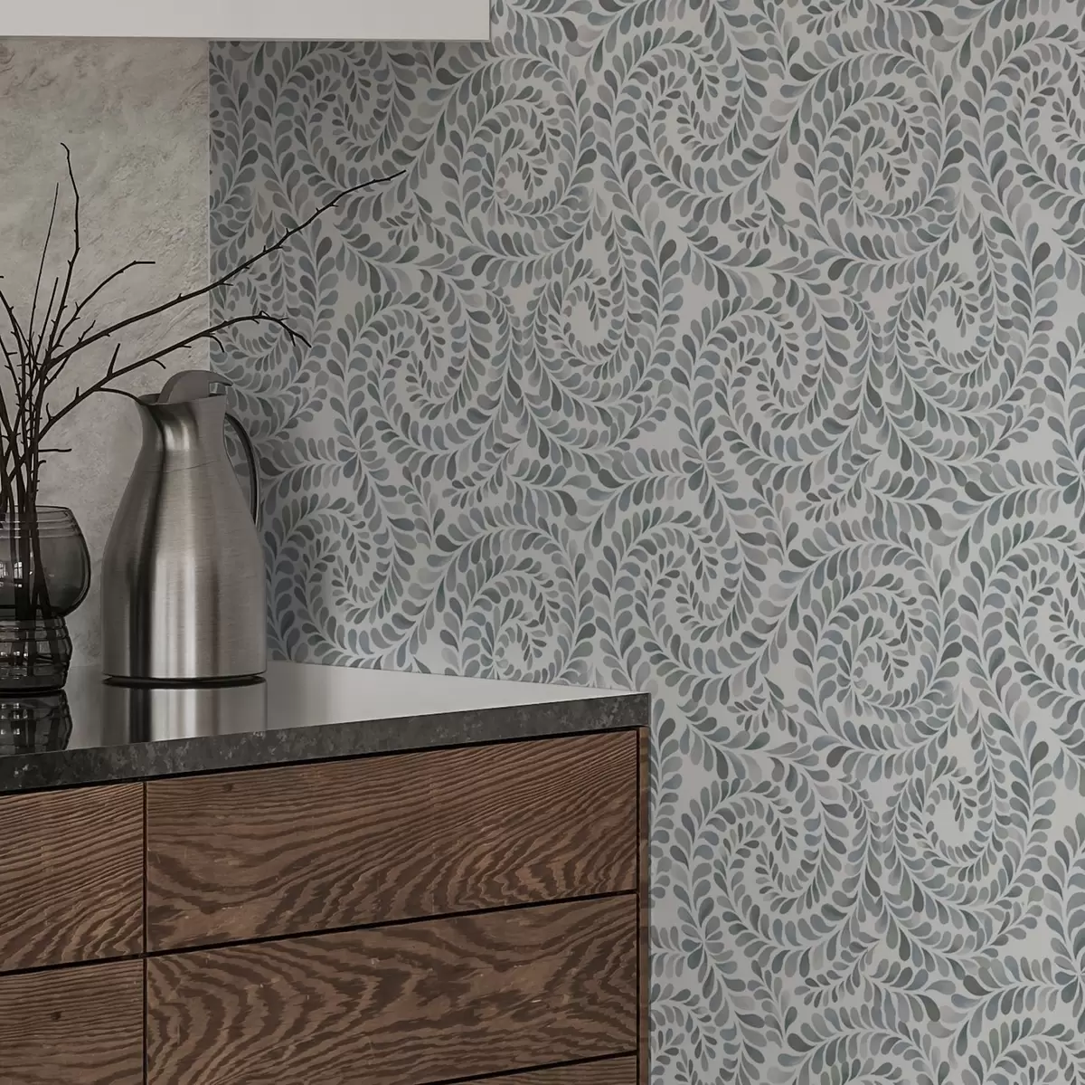 Bildschirmhintergründe Blattartige Spiralen in kühlen Graublau-Tönen Nr. a00602v1