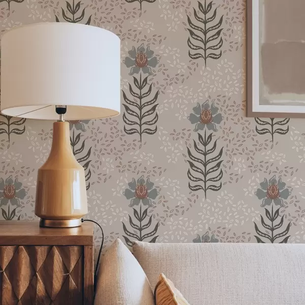 Bildschirmhintergründe Stilisierte Blumen und Samen auf warmem Beige Nr. a00604