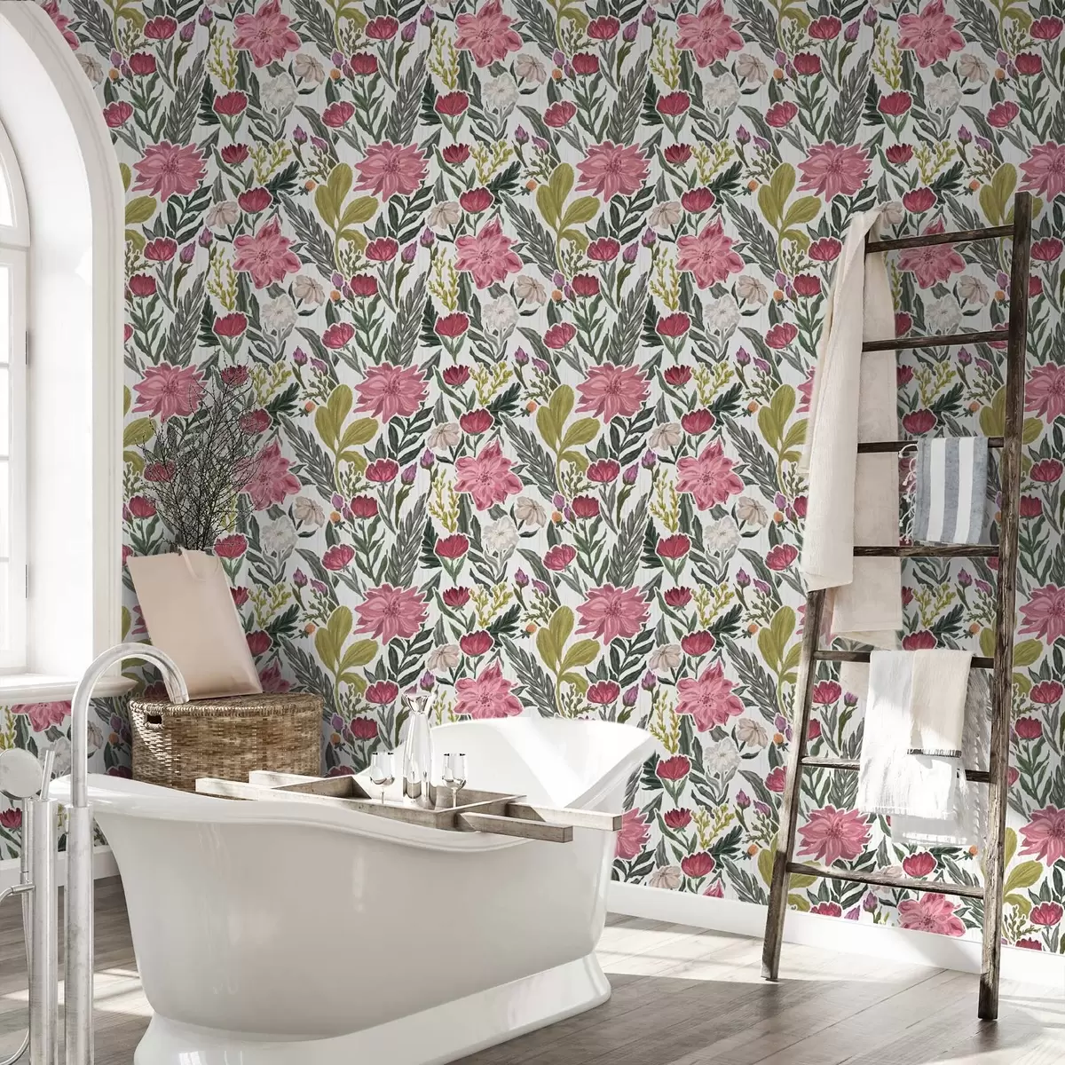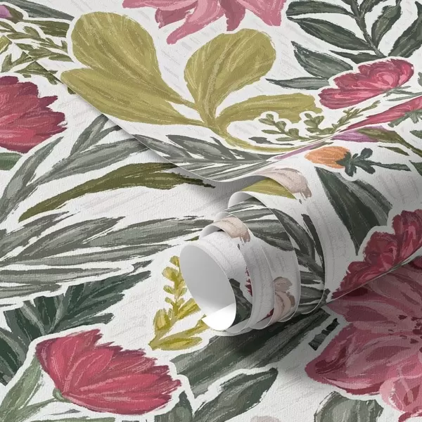 Bildschirmhintergründe Üppige rosa und cremefarbene Blumen auf weißem Hintergrund, pastose Textur Nr. a00629v1