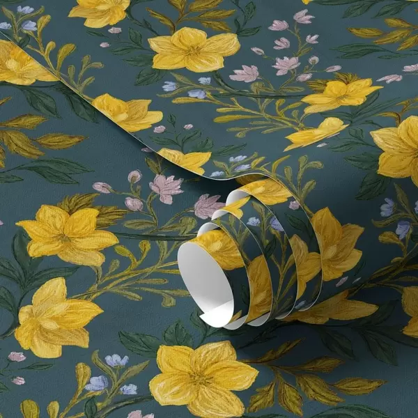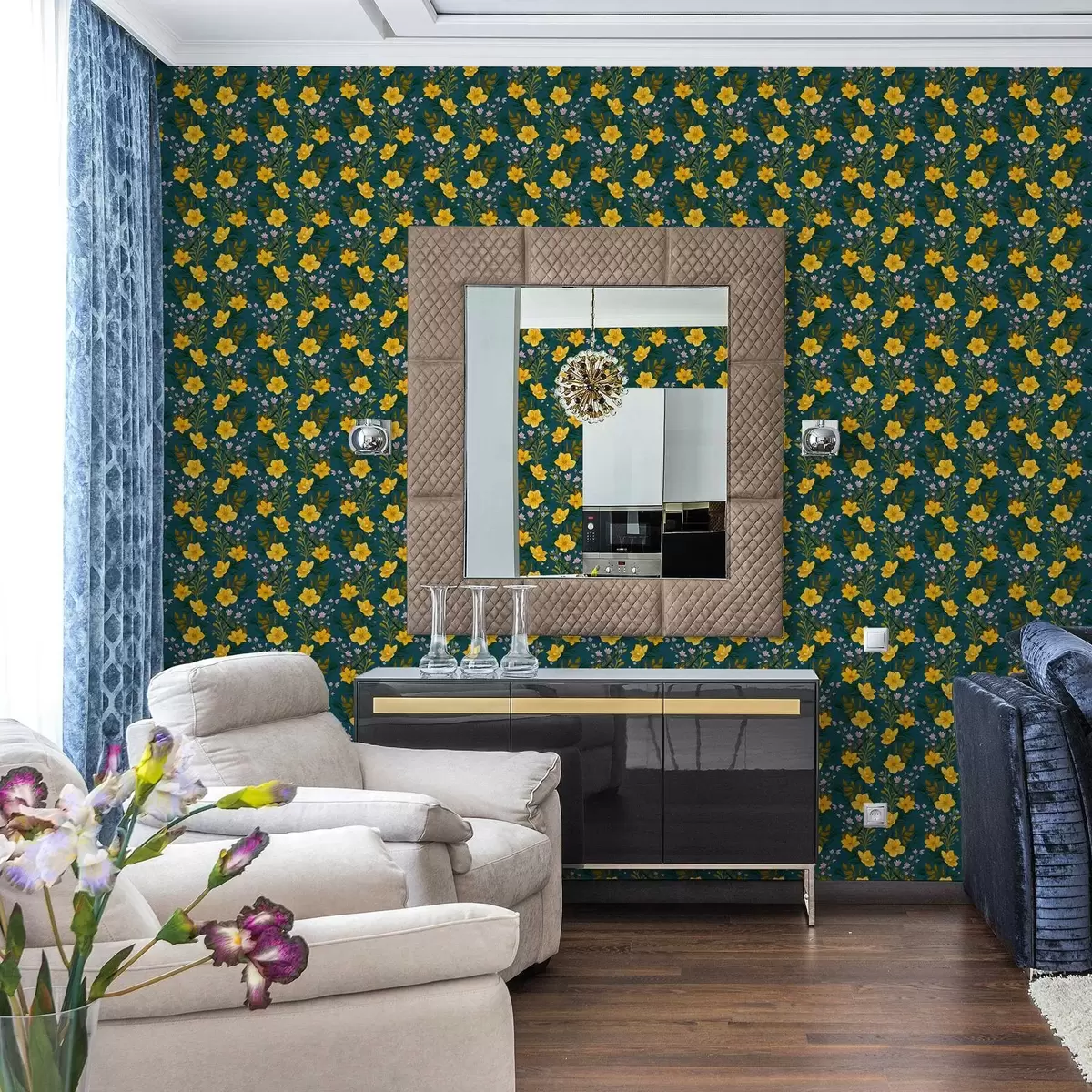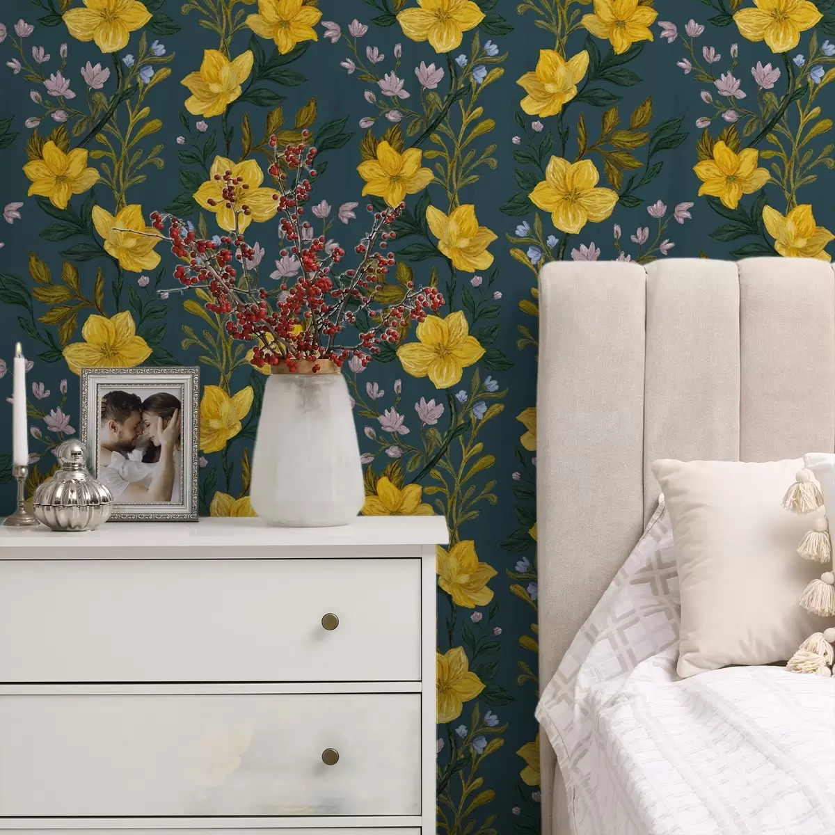 Bildschirmhintergründe Gelbe Blumen in vertikalen Girlanden auf dunkelblauem Hintergrund Nr. a00632v2