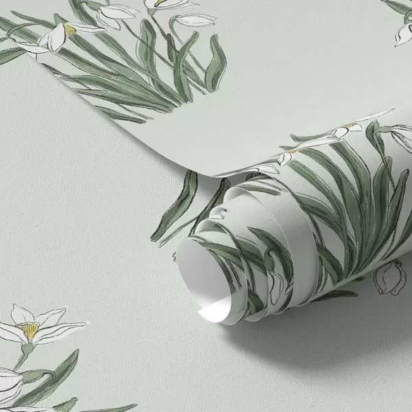 Bildschirmhintergründe Schneeglöckchen mit grünen Blättern auf pastellgrünem Hintergrund Nr. a00651