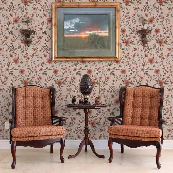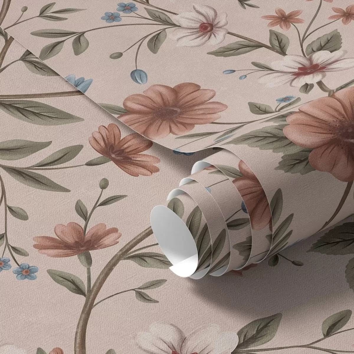 Bildschirmhintergründe Rosa-korallenrote Blüten und Blätter auf altrosa Hintergrund Nr. a00667