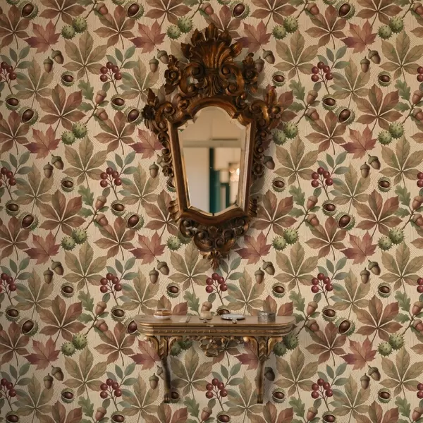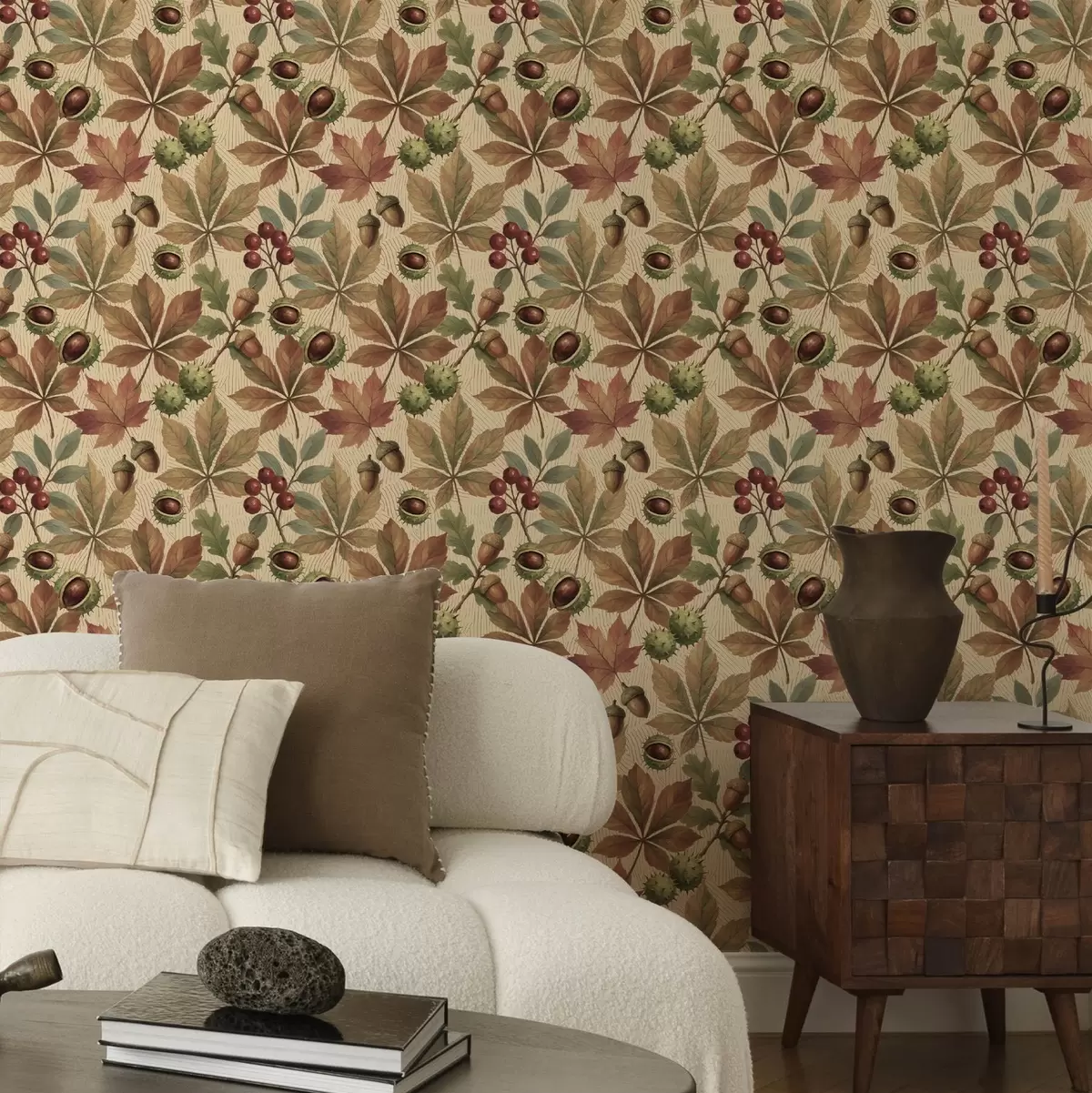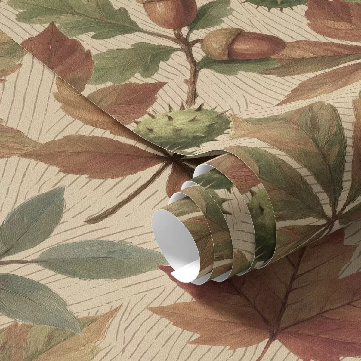Bildschirmhintergründe Herbstblätter, Eicheln und Beeren auf beigem Hintergrund Nr. a00754