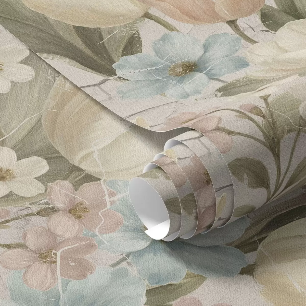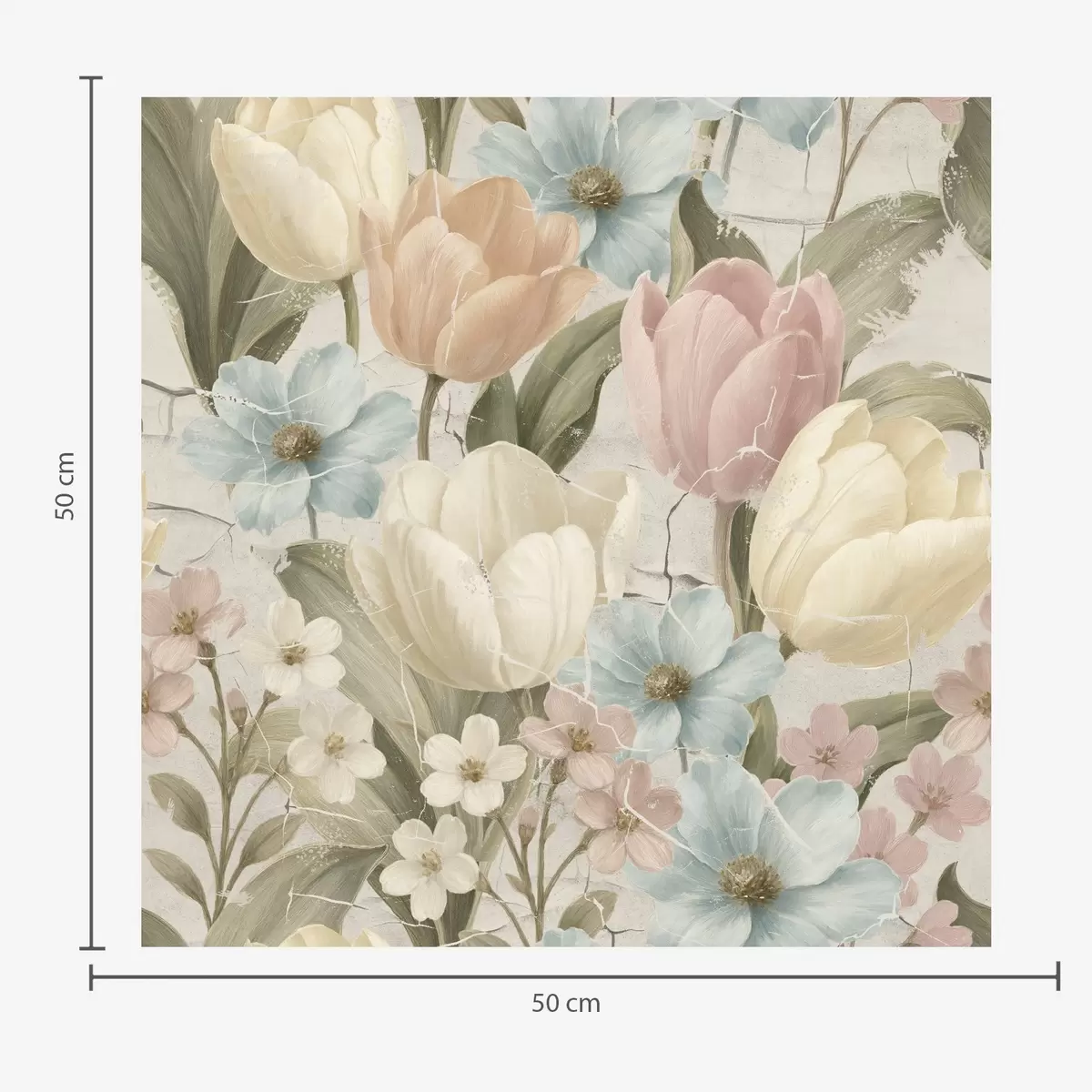Bildschirmhintergründe Pastellfarbene Tulpen und Blumen auf hellem, rissigem Hintergrund Nr. a00756