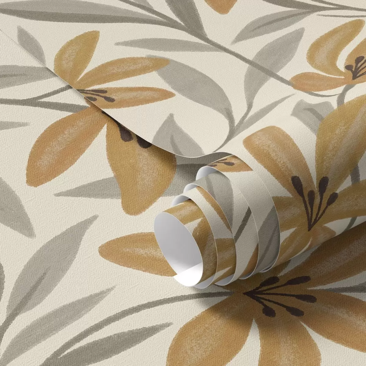 Bildschirmhintergründe Gelbe Lilien und graugrüne Blätter auf hellem Hintergrund Nr. a00757