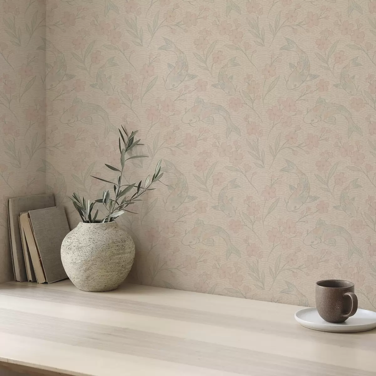 Bildschirmhintergründe Karpfen zwischen Blumen in sanften Beige- und Rosatönen Nr. a00766
