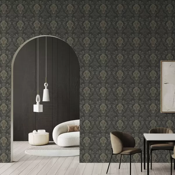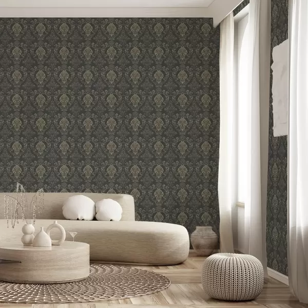 Bildschirmhintergründe Damast auf dunklem Graphitgrund, Akzente in Oliv-Ocker Nr. a00828v5