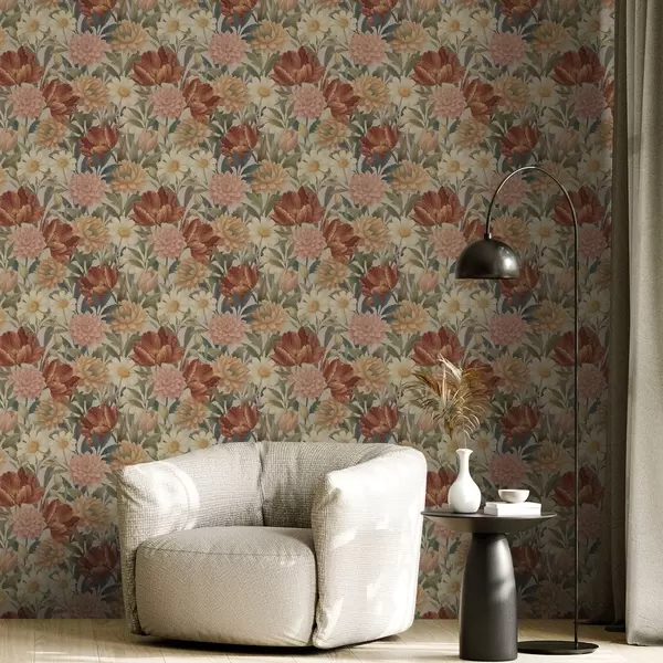 Bildschirmhintergründe Vintage-Gartenblüten in warmem Terrakotta und Pfirsich Nr. a00874
