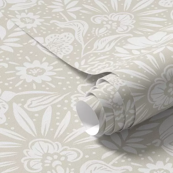 Bildschirmhintergründe Weißes lineares Blumenornament auf beigem Hintergrund Nr. a00956